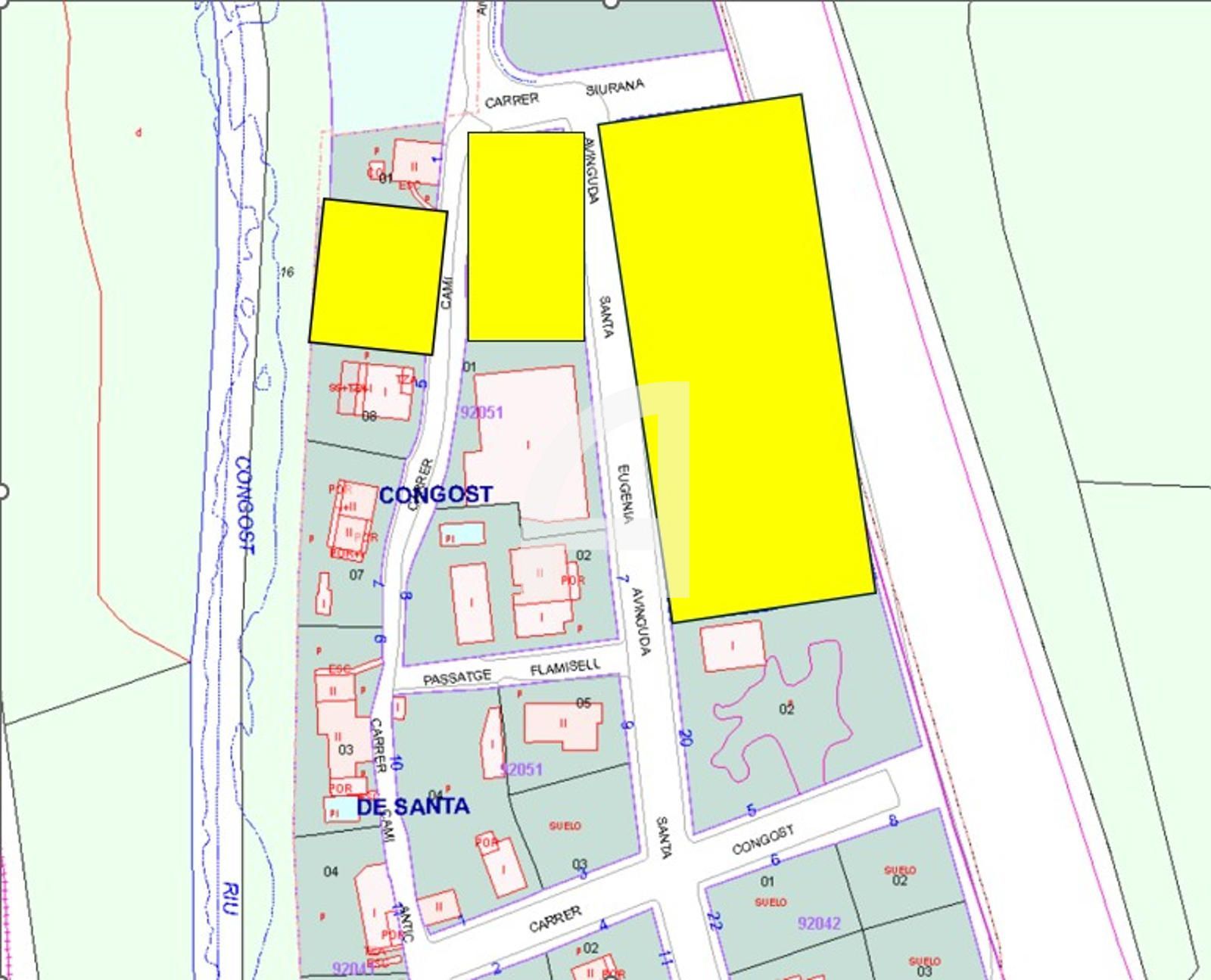 La parcela pequeña, la que queda al lado del rio, está en suelo urbano finalista (quizás falte urbanizar la calle o conectar Servicios a la red municipal). Es clave R2c (regulación en el documento R2c).