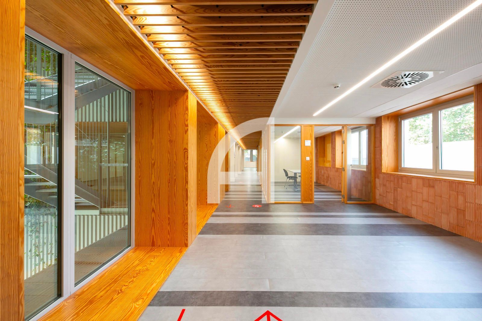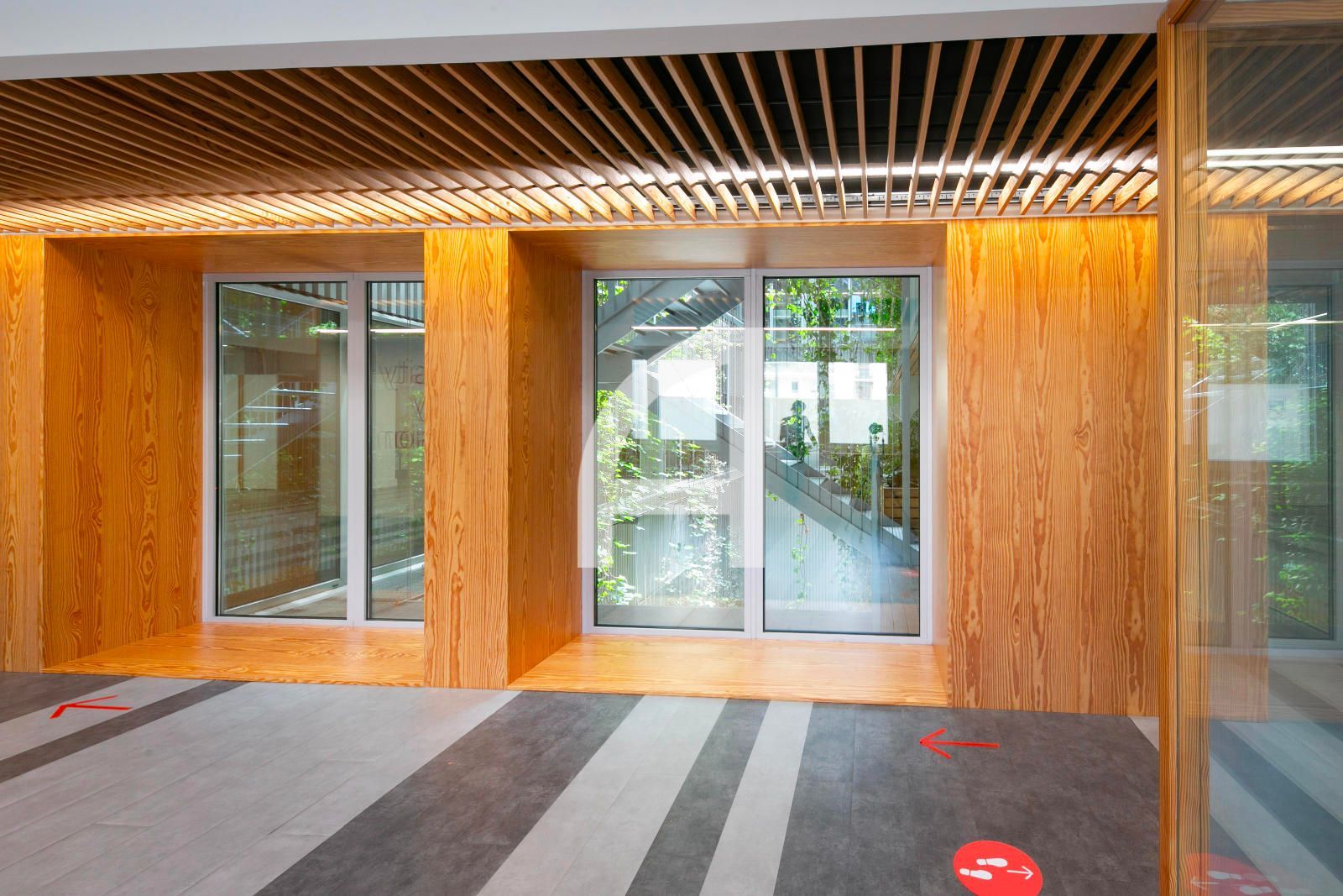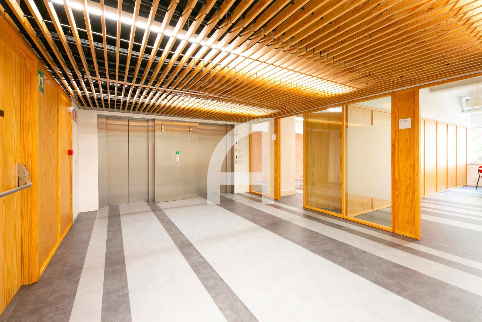 Disposa d'accés per vestíbul comú, concebut com una extensió de via pública, on trobem la recepció, nuclis d'ascensors, i escales.