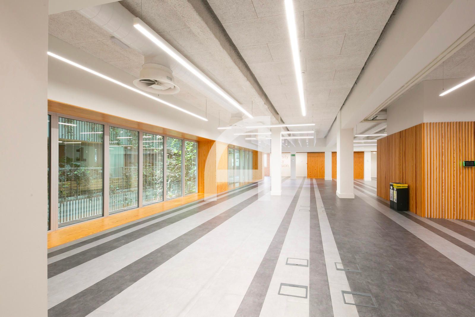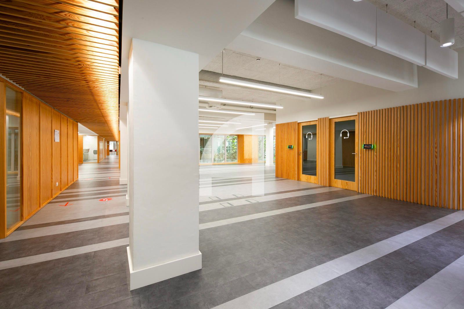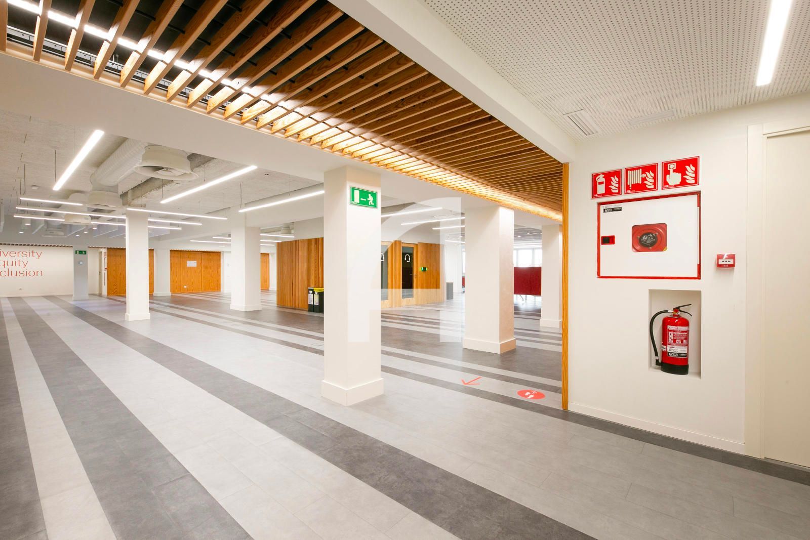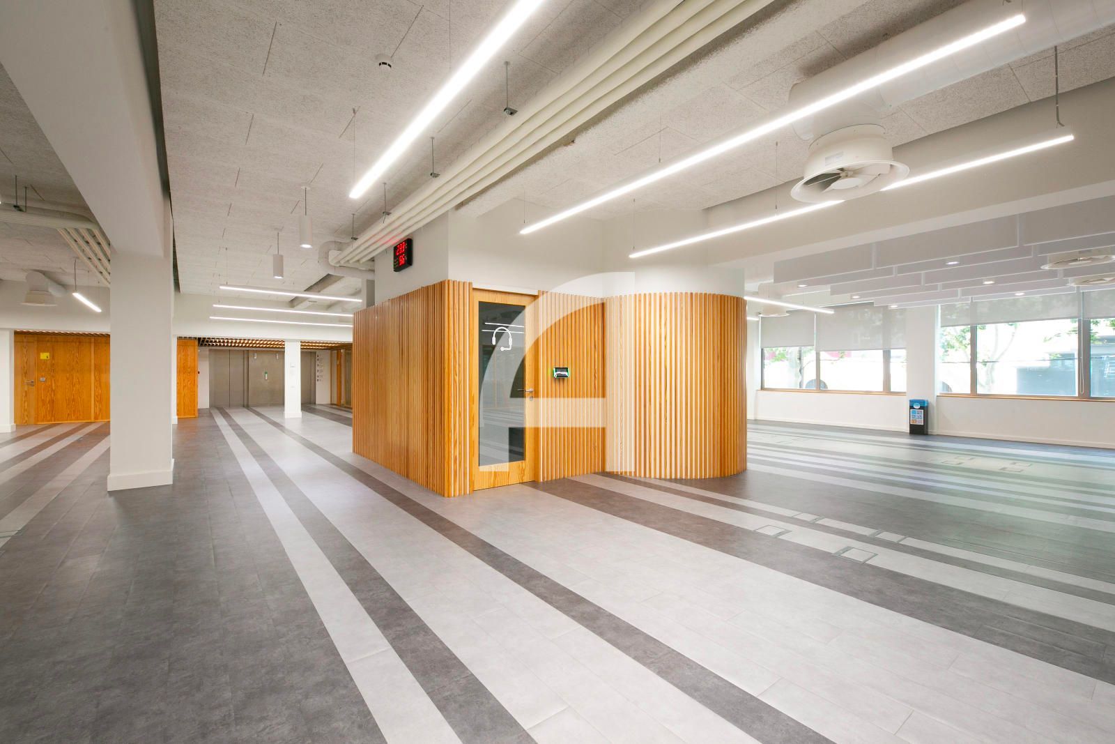 Disposa d'accés per vestíbul comú, concebut com una extensió de via pública, on trobem la recepció, nuclis d'ascensors, i escales.