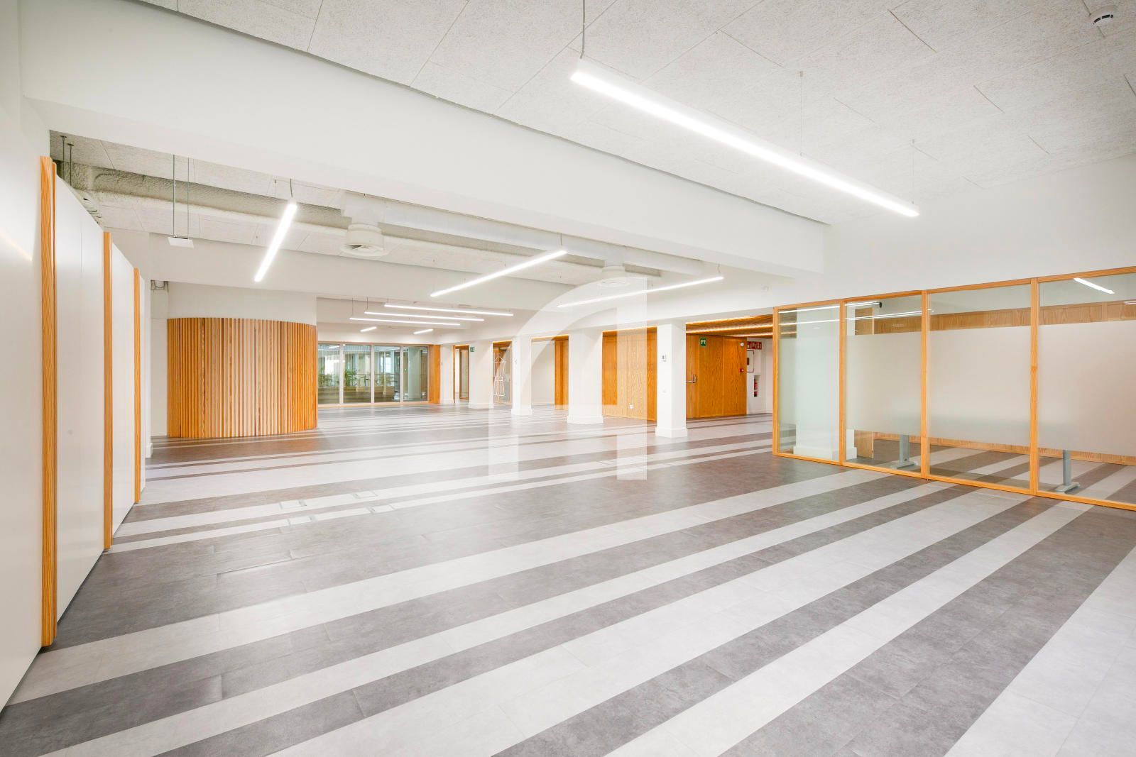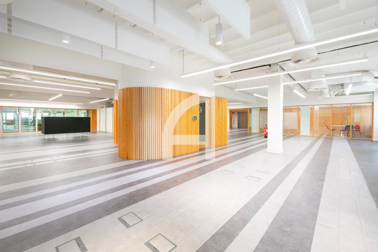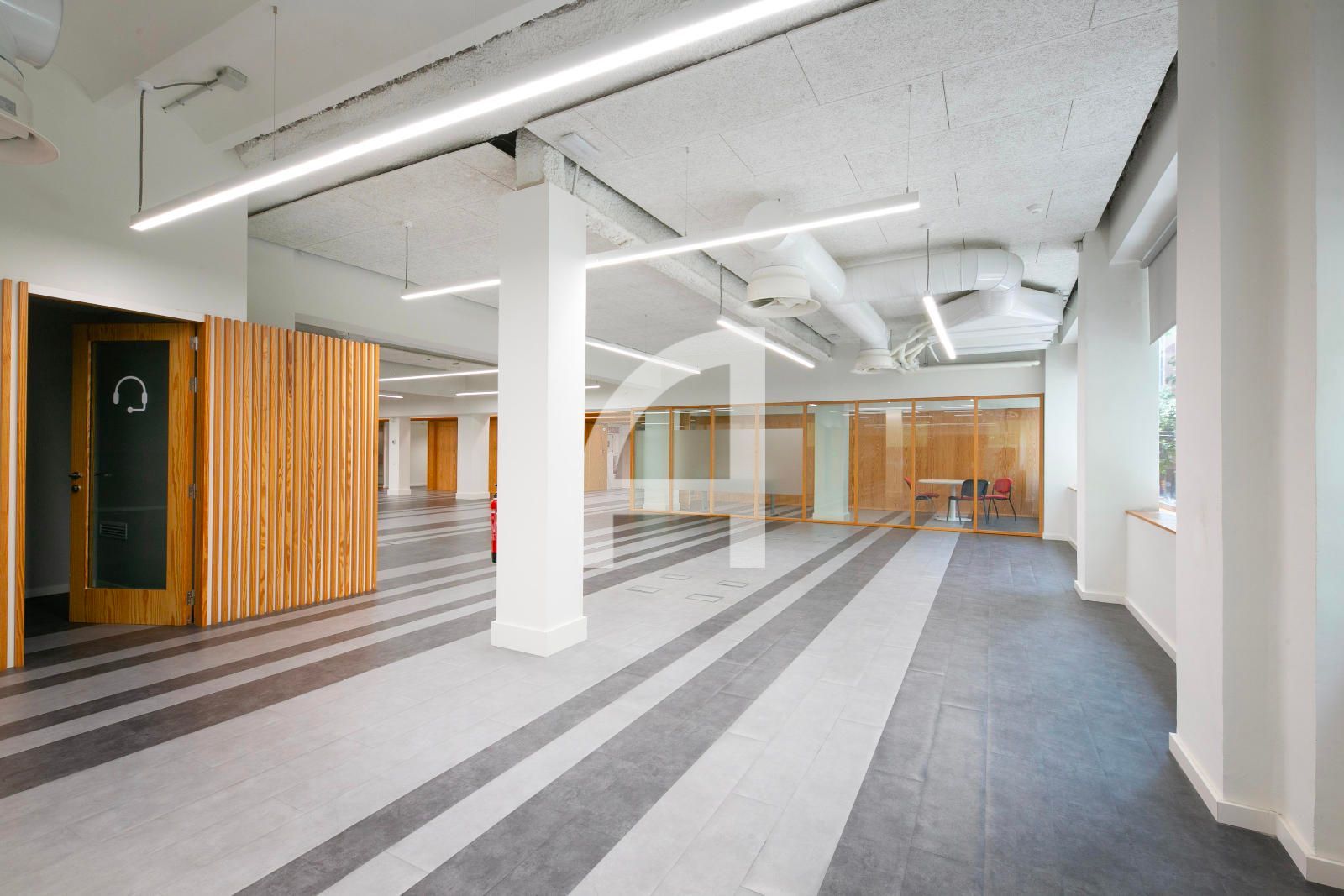 La superfície en qüestió, de 1.520m² construïts, ocupa tota la 1era planta real, i gira entorn a un pati central regat d'abundant vegetació i llum natural, i que s'estructura en una àmplia zona diàfana destinada a espais de treball, i dues franges laterals, que alberguen els nuclis de comunicació vertical i serveis, sales de reunions, despatxos, i àrees de descans. Gaudeix així mateix d'un lluminós pati posterior.