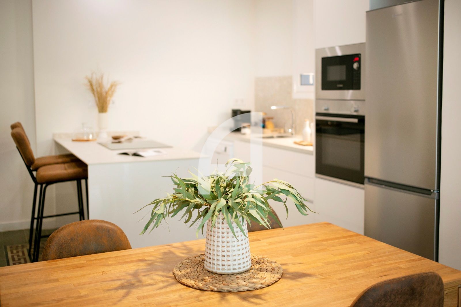 Els 57 metres quadrats es distribueixen en un espaiós saló menjador amb cuina oberta totalment equipada amb illa central, que ofereix tots els electrodomèstics i comoditats que la cuina requereix, 2 habitacions dobles i un bany de tres peces amb dutxa.