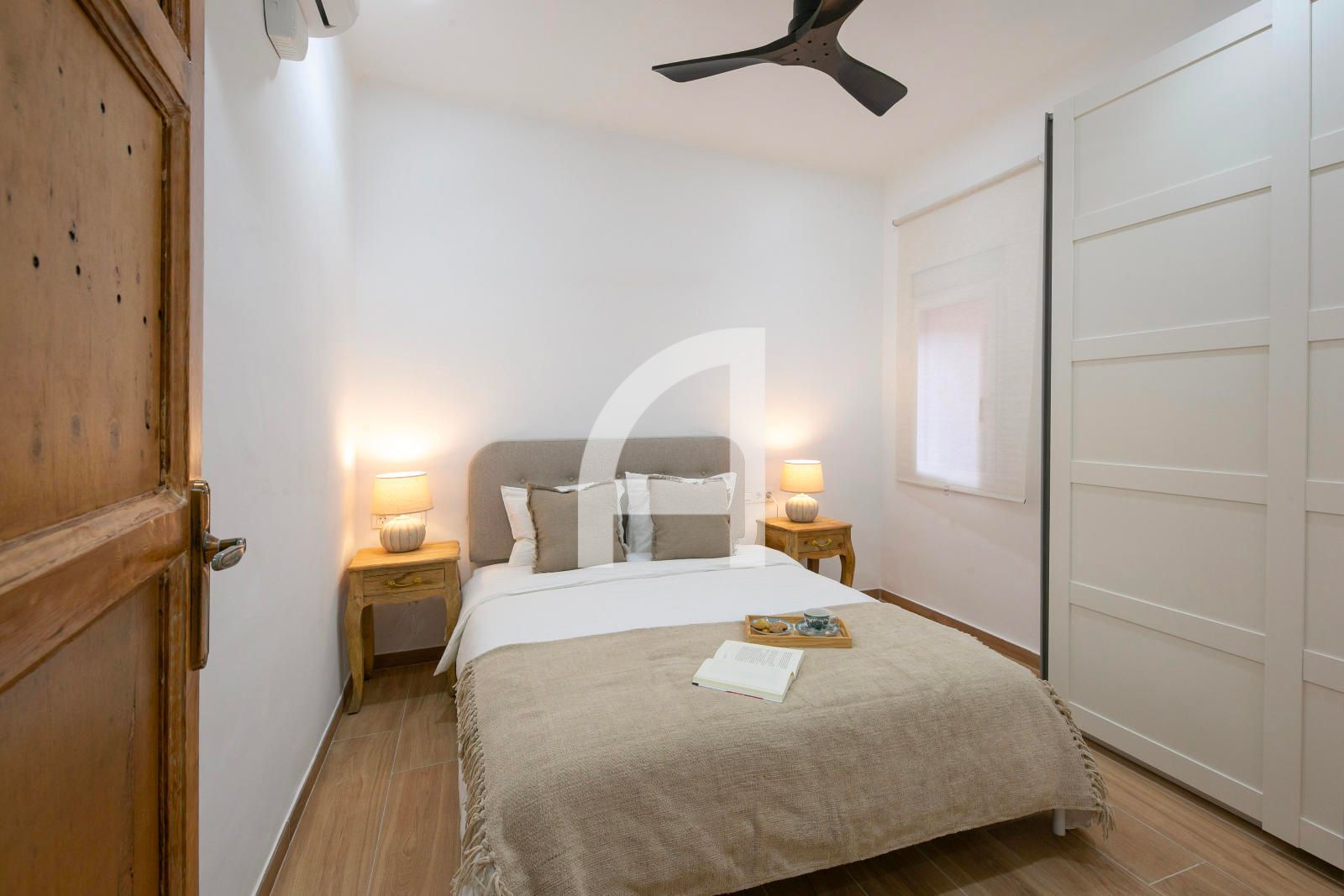 Els seus 115 metres quadrats es distribueixen en un saló lluminós, una cuina totalment equipada amb zona d´aigües, quatre habitacions, tres dobles i una individual, i també disposa de dos banys complets.
