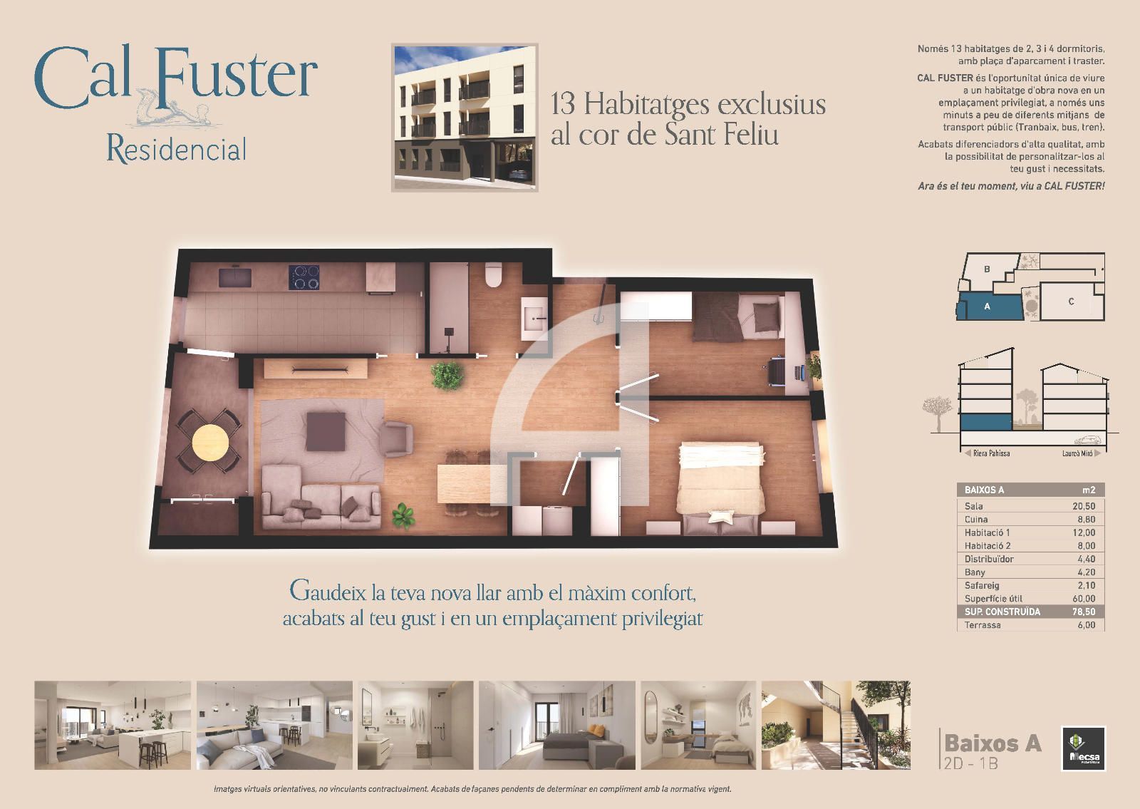 La promoció d'obra nova Cal Fuster Residencial és una proposta d'alta qualitat situada al cor de Sant Feliu de Llobregat. Localitat estratègica per la seva proximitat a la ciutat de Barcelona, sense perdre el seu encant personal i entorn natural gràcies a la proximitat amb el parc natural de Collserola.