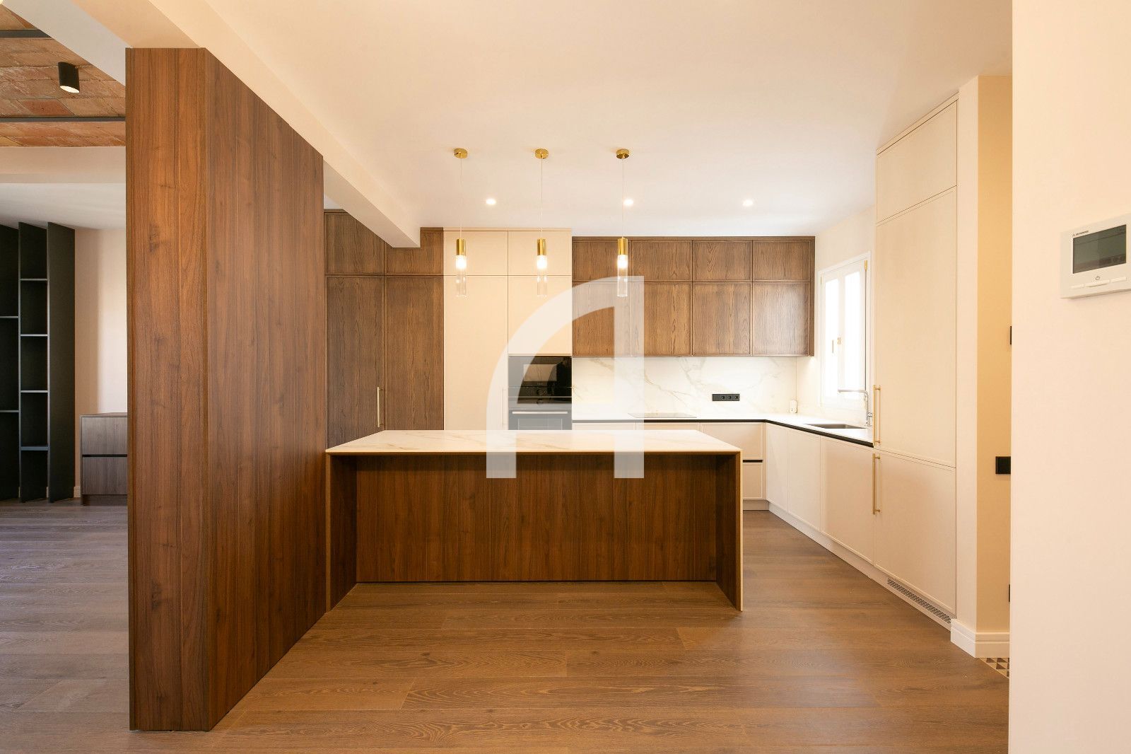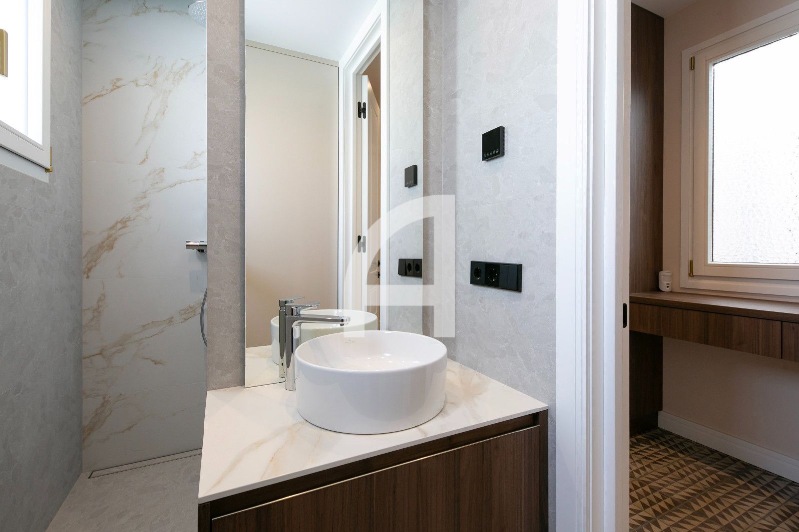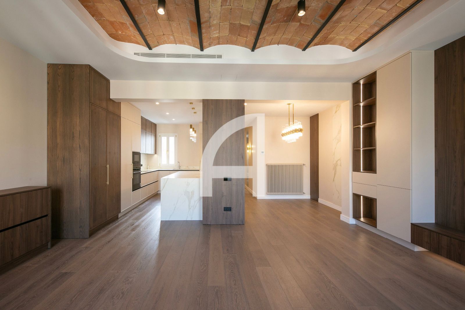 La reforma integral ha estat executada per professionals especialitzats, amb materials de primera qualitat i un acabat cuidat al detall. Es prioritza el confort acústic i tèrmic, amb instal·lació d'aire condicionat per conductes Mitsubishi en cada estada i calefacció mitjançant caldera de gas Bosch i radiadors IRSAP Tesi de disseny. Els terres són de fusta de roure en parquet, la zona d'entrada i passadís manté l'encant del mosaic hidràulic original, i els banys compten amb porcelanato italià d'alt nivell per a un acabat durable i estètic.
