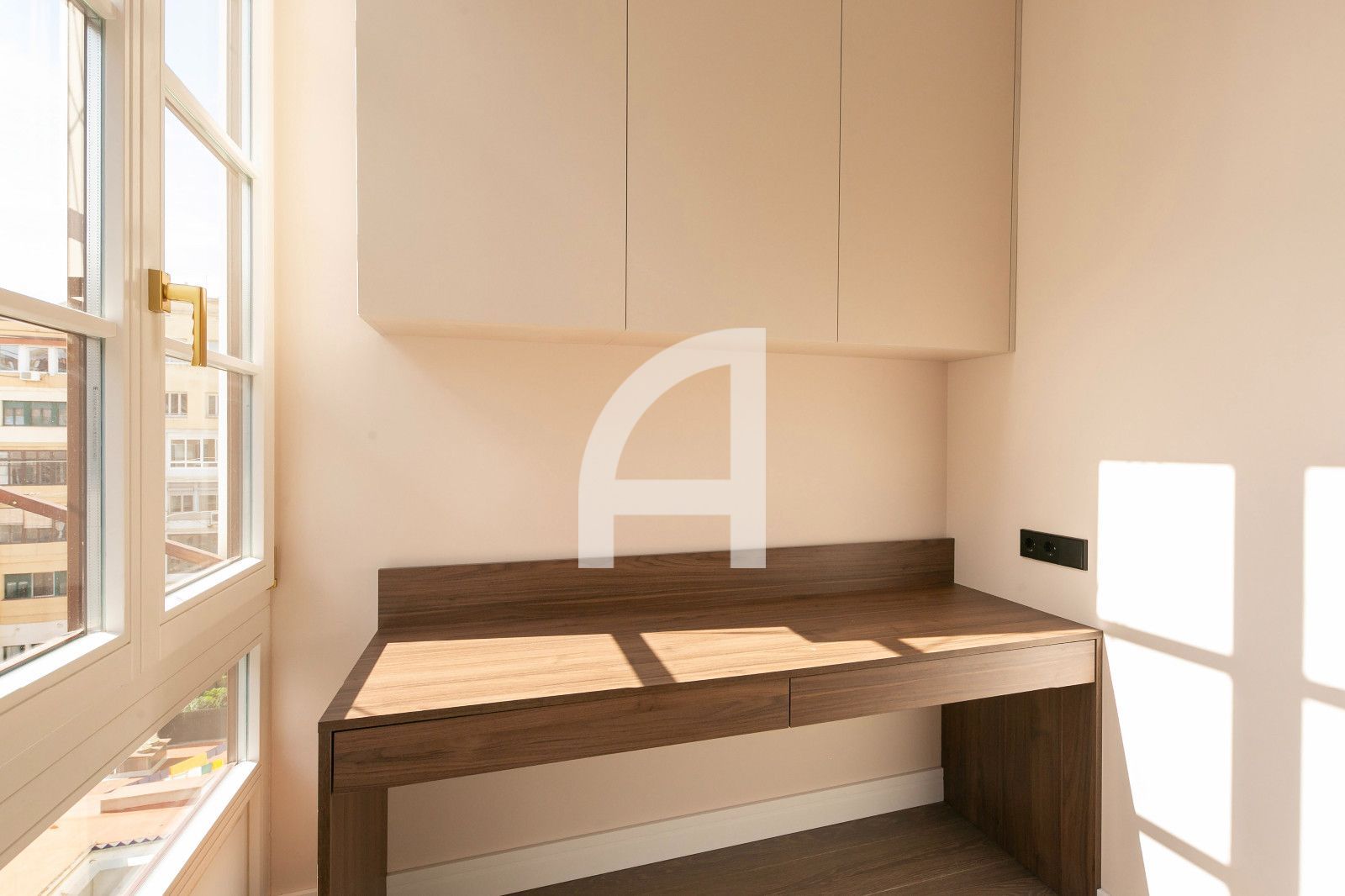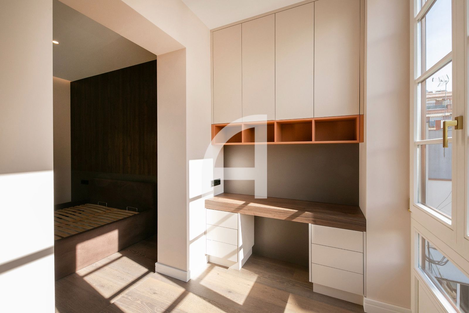 L'habitatge ofereix vistes a la Sagrada Família des de l'última planta, amb orientació a dues façanes que asseguren abundant llum natural i vistes obertes. Els armaris de paret i la cuina equipada amb electrodomèstics Bosch optimitzen la funcionalitat diària, mantenint un aspecte net i contemporani. L'altura de sostres en la zona del saló aconsegueix 3,30 metres fins a les bigues de ferro, aportant sensació d'amplitud. Tot el conjunt s'ha cuidat per a aconseguir un equilibri entre l'estètica modernista i la comoditat del disseny actual.