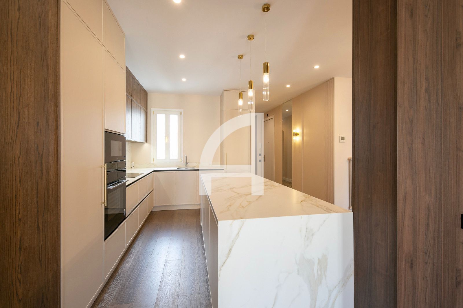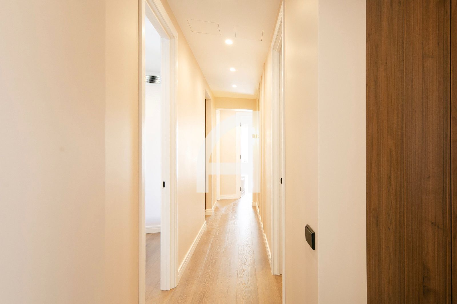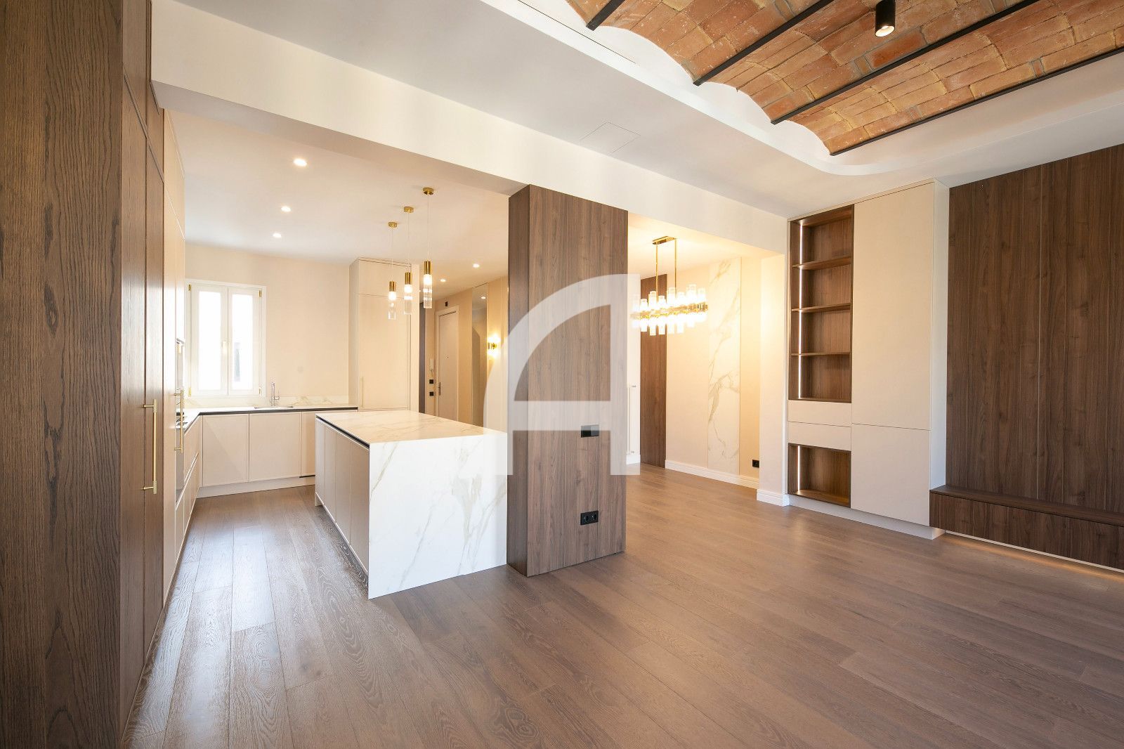 La distribució és àmplia i funcional, amb quatre dormitoris ben diferenciats, incloent-hi una suite amb vestidor i una altra habitació amb bany privat. Tres banys complets destaquen per la seva terminació de luxe i equipament modern, pensats per a màxima comoditat. El saló-cuina-menjador és un espai diàfan i lluminós, amb dos balcons que permeten vistes obertes i llum natural durant tot el dia, i una cuina oberta de disseny contemporani amb encasti d'alta gamma. El resultat és un ambient sobri i elegant, ideal per a la vida diària i l'entreteniment.