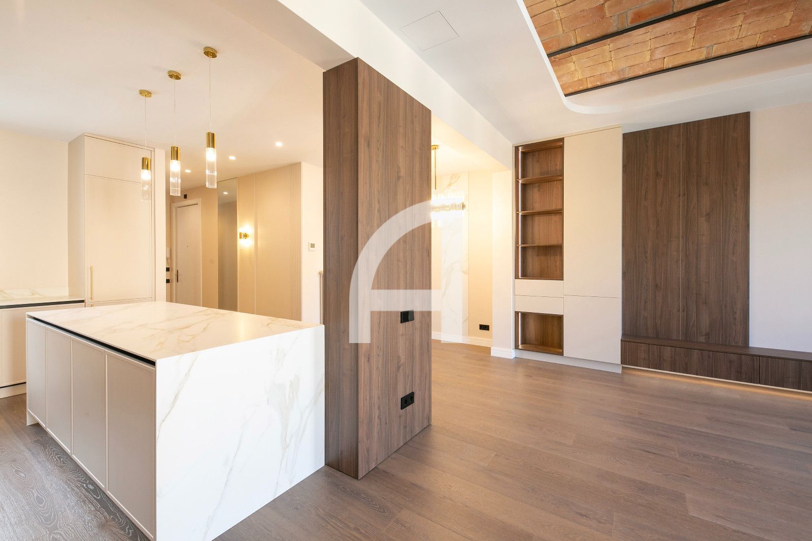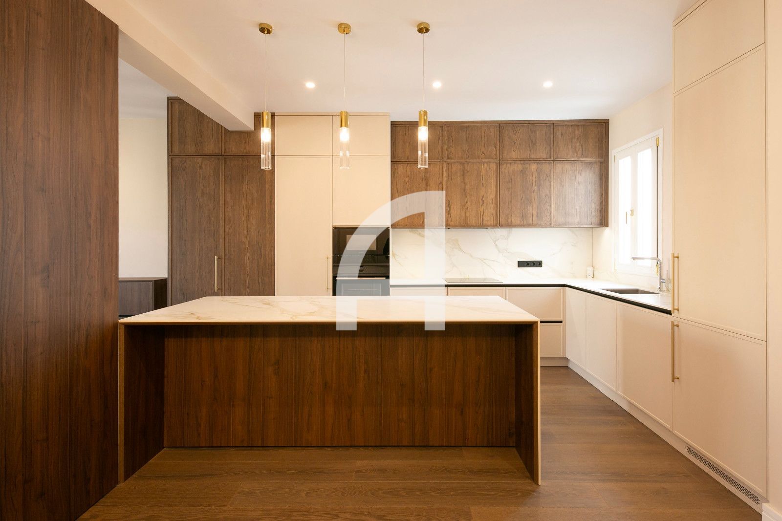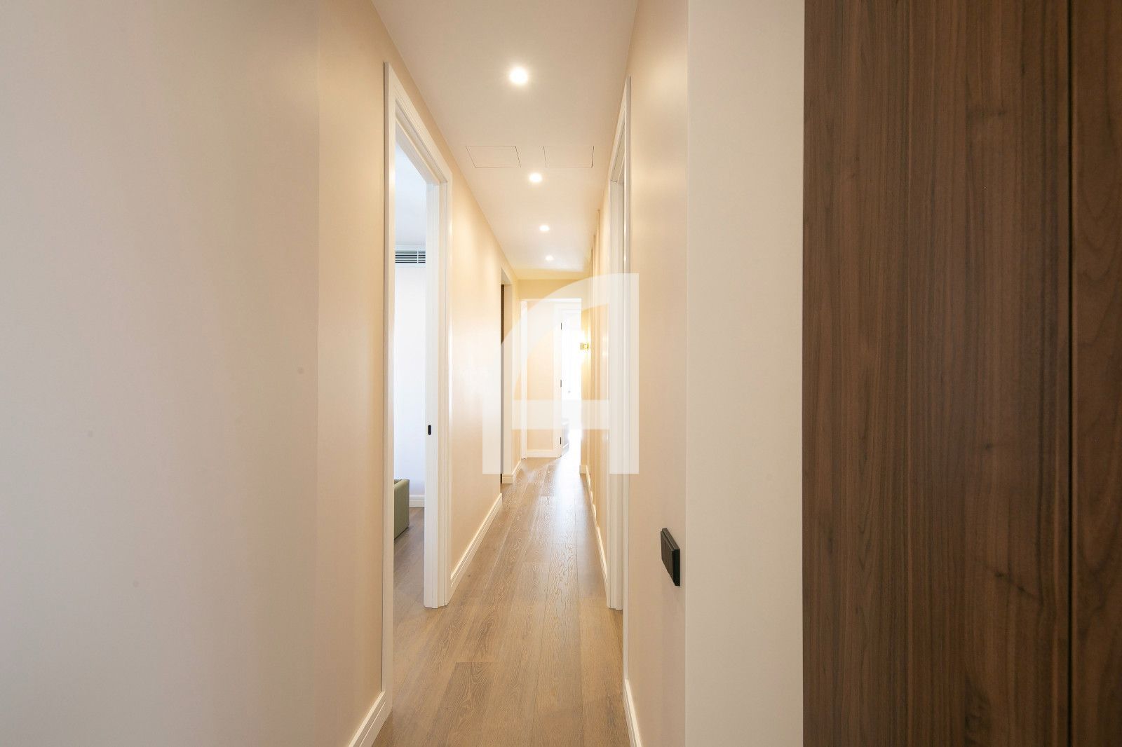 La distribució és àmplia i funcional, amb quatre dormitoris ben diferenciats, incloent-hi una suite amb vestidor i una altra habitació amb bany privat. Tres banys complets destaquen per la seva terminació de luxe i equipament modern, pensats per a màxima comoditat. El saló-cuina-menjador és un espai diàfan i lluminós, amb dos balcons que permeten vistes obertes i llum natural durant tot el dia, i una cuina oberta de disseny contemporani amb encasti d'alta gamma. El resultat és un ambient sobri i elegant, ideal per a la vida diària i l'entreteniment.