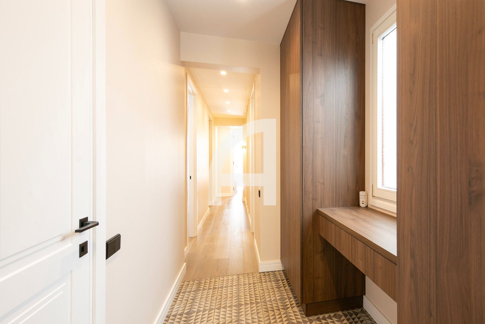 La superfície total és de 166 m², distribuïda en quatre habitacions, tres banys, ampli saló amb cuina integrada i dos balcons que permeten gaudir de l'entorn urbà. S'inclouen mobles integrats com a armaris de paret i cuina moblada, amb acabats d'alta gamma que faciliten la vida diària sense necessitat d'obres. El sistema de climatització independent per estades i la climatització general garanteixen confort tot l'any, mentre que la calefacció i l'aïllament redueixen el consum energètic.
