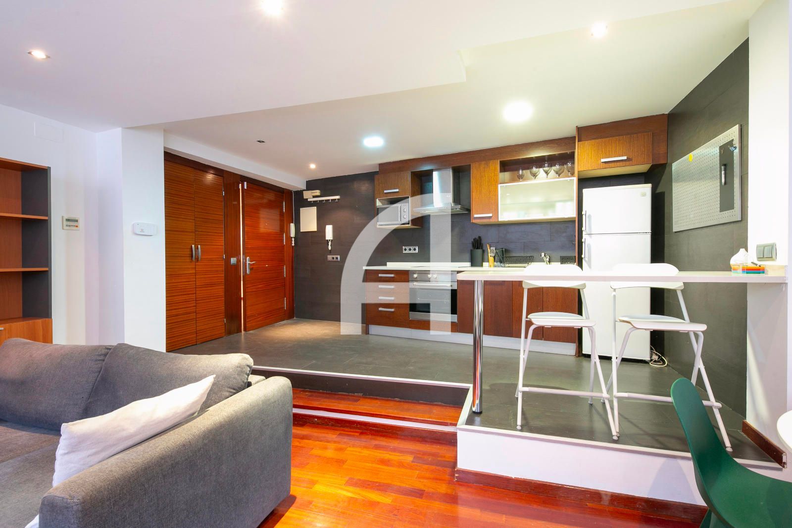 La cuina moderna oberta al saló i el bany mantenen un acabat pràctic i funcional, pensat per a un ús diari sense complicacions. Les instal·lacions d'aigua i electricitat estan en bon estat i preparades per a un ús immediat, amb flexibilitat per a futures millores segons preferències del nou propietari. Aquest immoble és una opció versàtil en un entorn consolidat, ideal per a qui busca una base estable en una zona connectada i residencial de Barcelona.