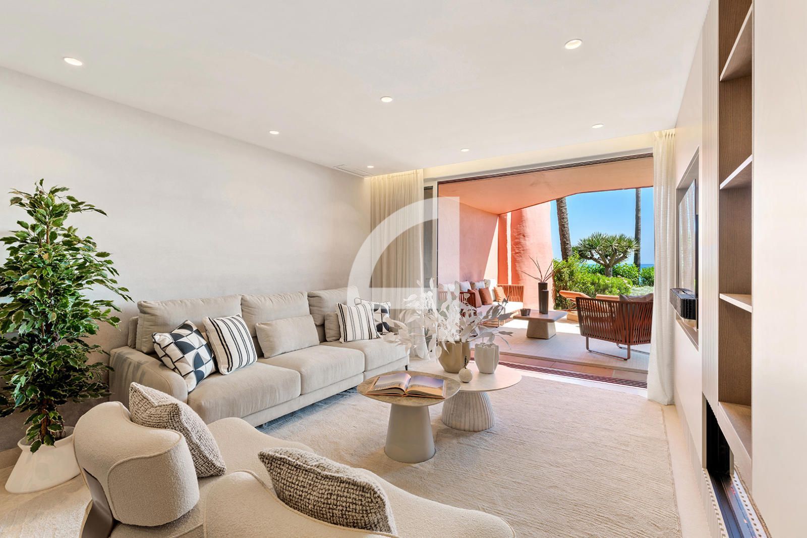 Menara Beach 1201 es un apartamento de planta baja completamente renovado, situado en el corazón de la exclusiva urbanización Menara Beach, en la codiciada Nueva Milla de Oro entre Marbella y Estepona. Esta vivienda representa una oportunidad única para quienes buscan un estilo de vida de lujo frente al Mediterráneo, con todas las comodidades de un resort y la privacidad de un hogar de alto standing.