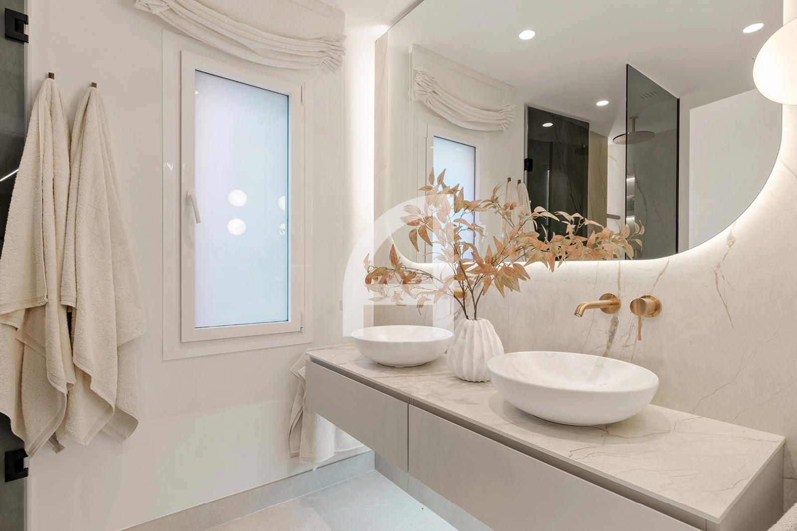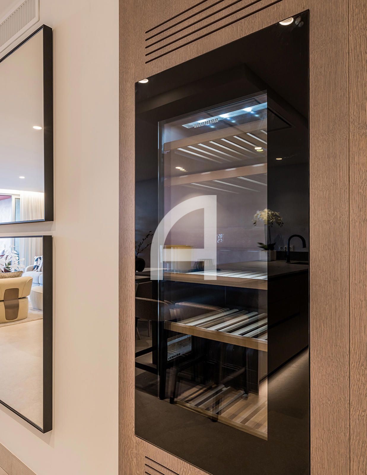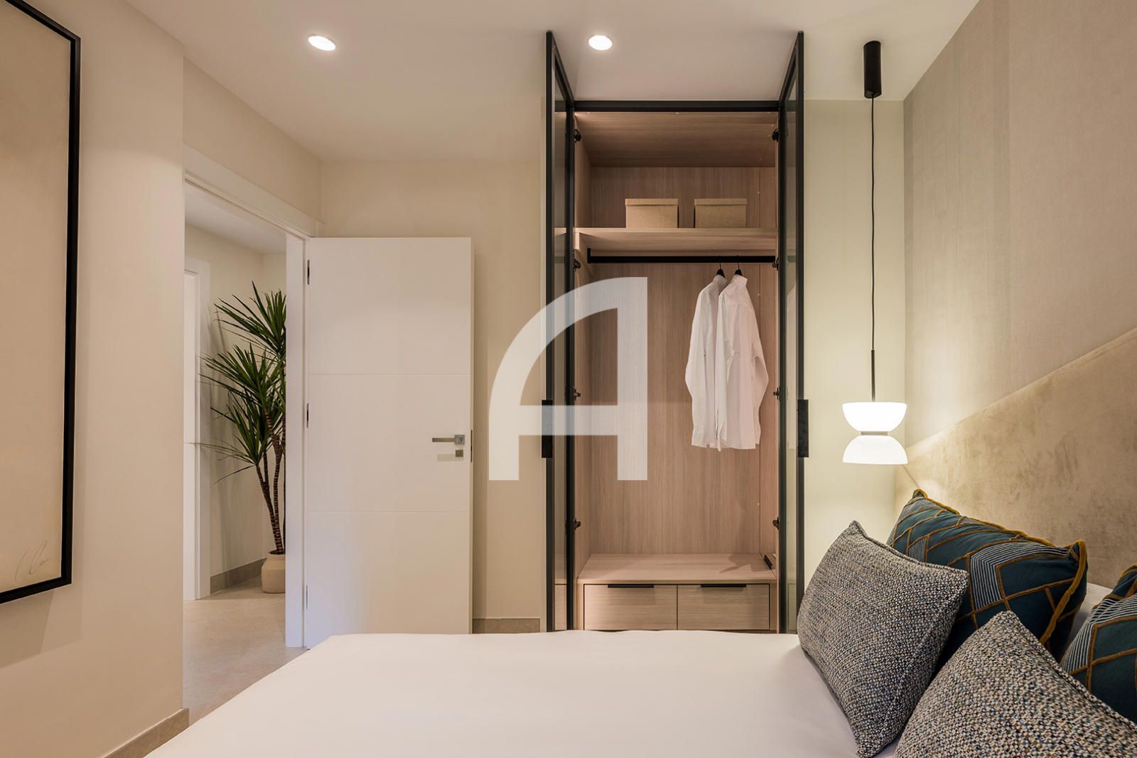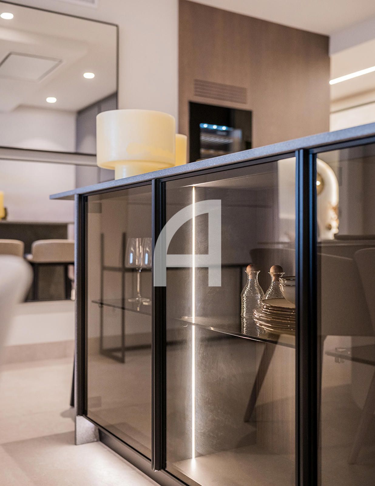La superficie construida de 130 m² alberga un salón-comedor de diseño abierto, perfectamente conectado con una cocina gourmet equipada con electrodomésticos de alta gama, vinoteca y placa moderna. El piso cuenta con tres dormitorios amplios y dos baños elegantes, pensados para ofrecer confort y funcionalidad. El dormitorio principal dispone de acceso directo a una terraza privada de generosas dimensiones (≈ 42 m²), un espacio ideal para relajarse, disfrutar del clima mediterráneo o contemplar el mar.