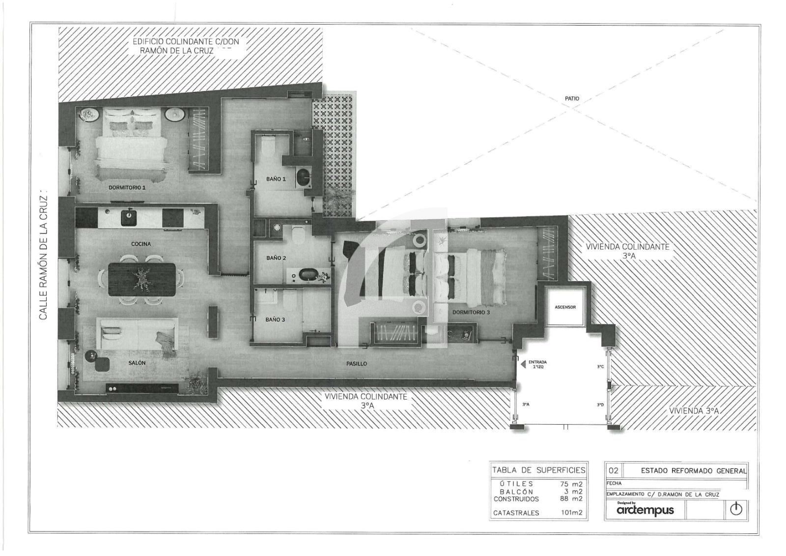 Pis en venda a Madrid, amb 88 m2, 3 habitacions i 3 banys, Ascensor, Moblat, Aire condicionat i Calefacció Central.