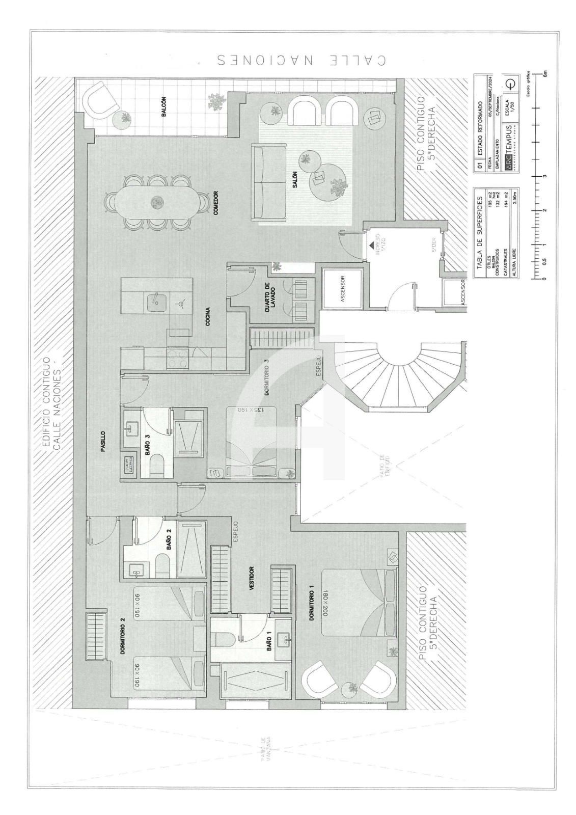 Pis en venda a Madrid, amb 164 m2, 3 habitacions i 3 banys, Garatge, Traster, Ascensor, Moblat, Aire condicionat i Calefacció Central.