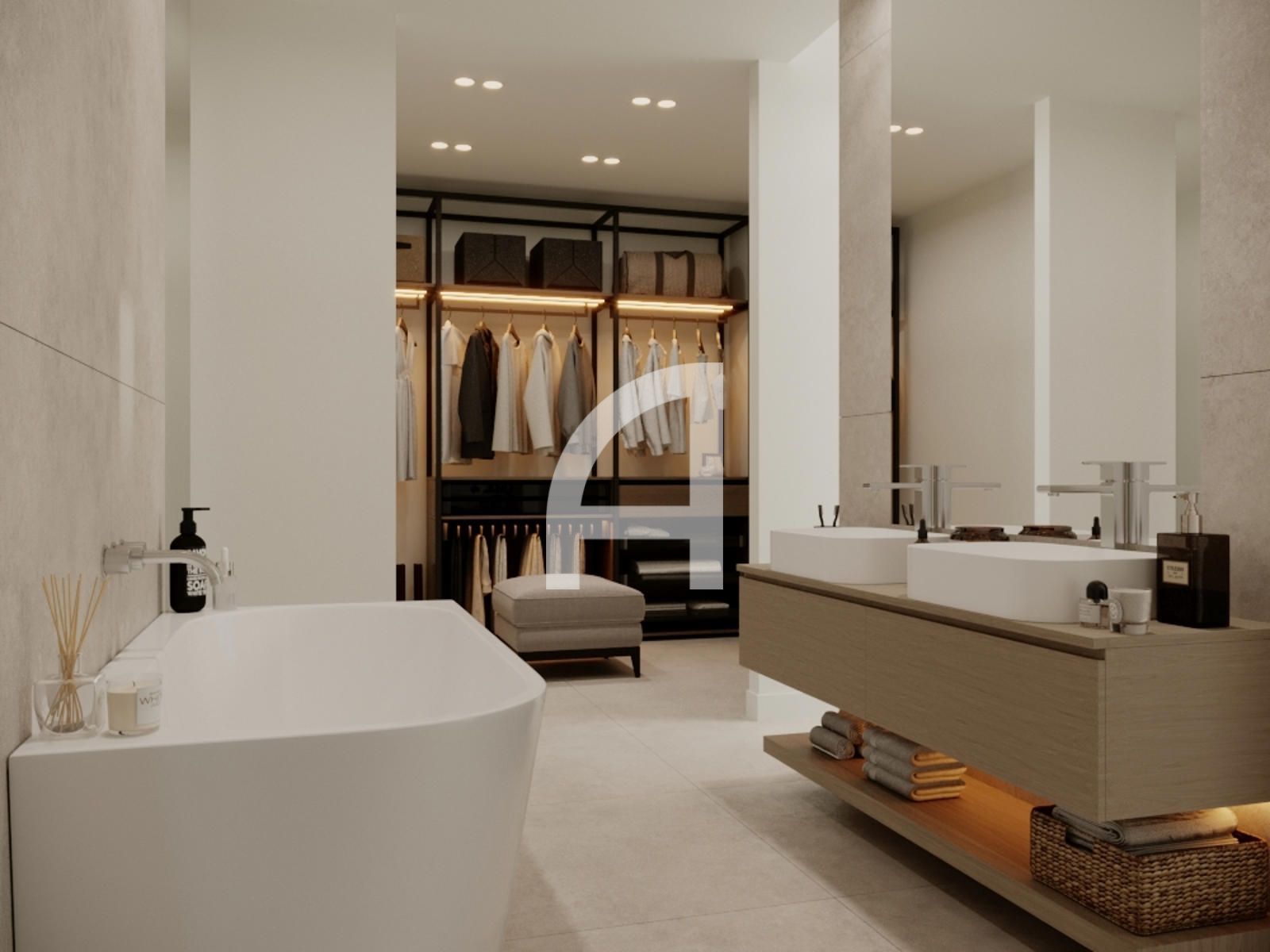 Els terres porcellànics de gran format en tota la planta li donen un acabat homogeni i de fàcil manteniment. Les portes són xapades en fusta natural de noguera, amb detalls d'alta precisió i continuïtat estètica amb la resta de l'habitatge.