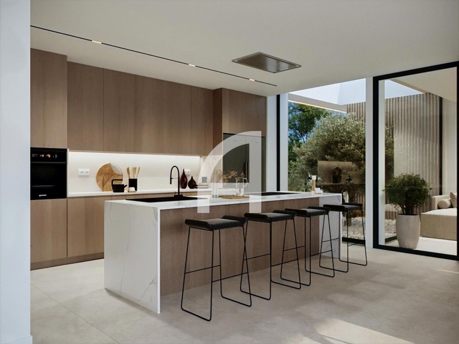 Aquest magnífic habitatge disposa d'una cuina amb illa central amb espais amplis i funcionals que connecten amb el menjador i la sala d'estar, creant un estil de vida diari fluid i pràctic, el mobiliari és de la prestigiosa marca Santos en fusta de noguera, els electrodomèstics estan integrats, són de la marca Bosch i les aixetes de marca Hansgrohe.