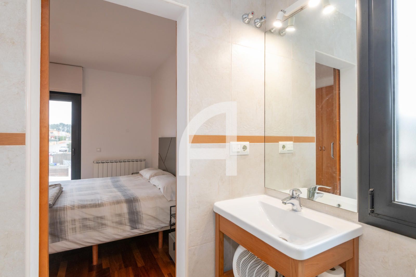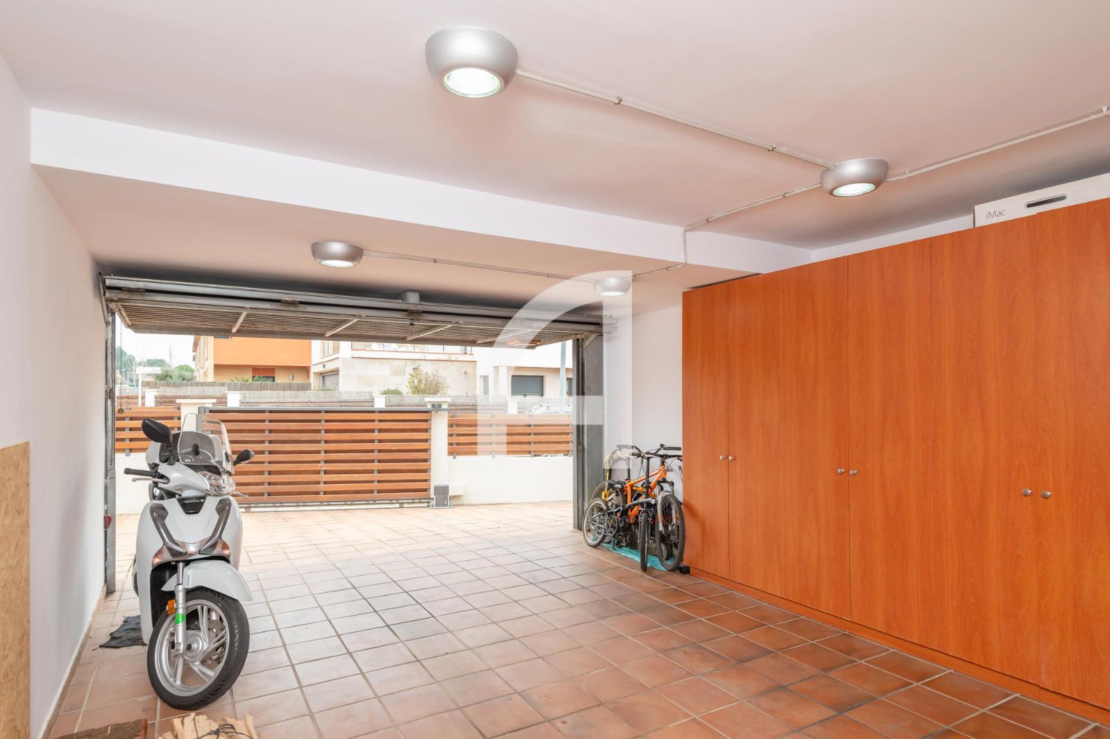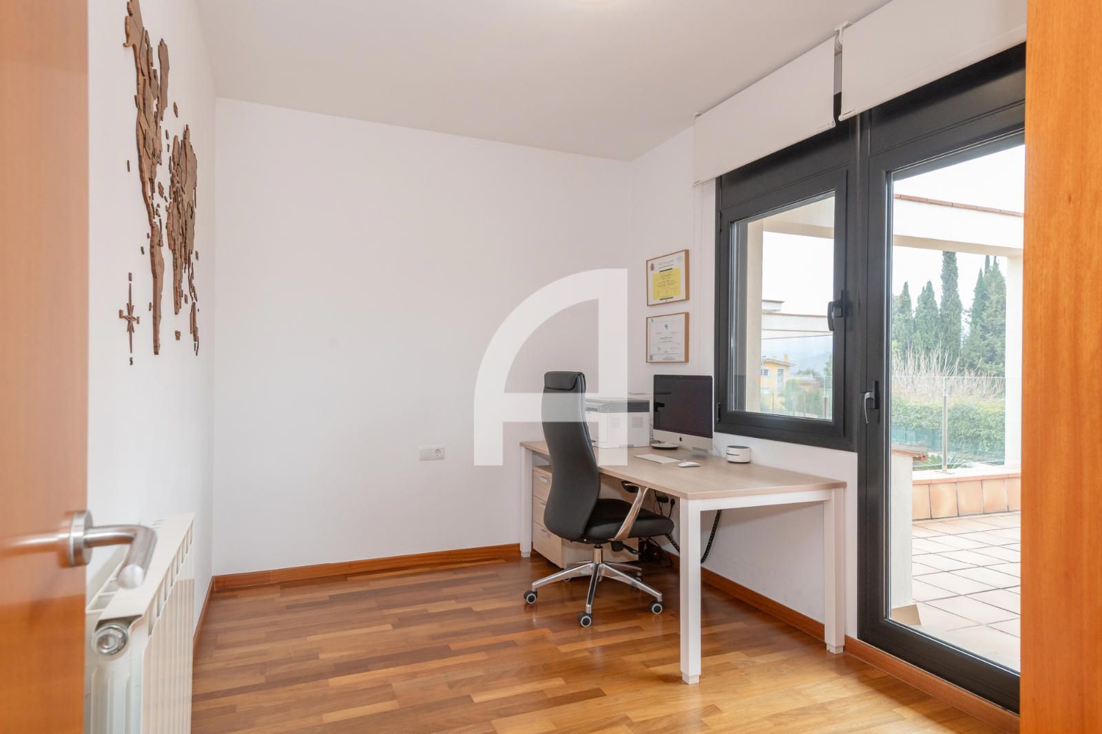 A la mateixa planta trobem una cuina office totalment equipada, també amb sortida a l’exterior. A més, l’habitatge disposa d’una habitació individual i d’un bany de cortesia en aquesta planta. El garatge, amb capacitat per a dos cotxes, permet accedir directament a l’interior de la casa.