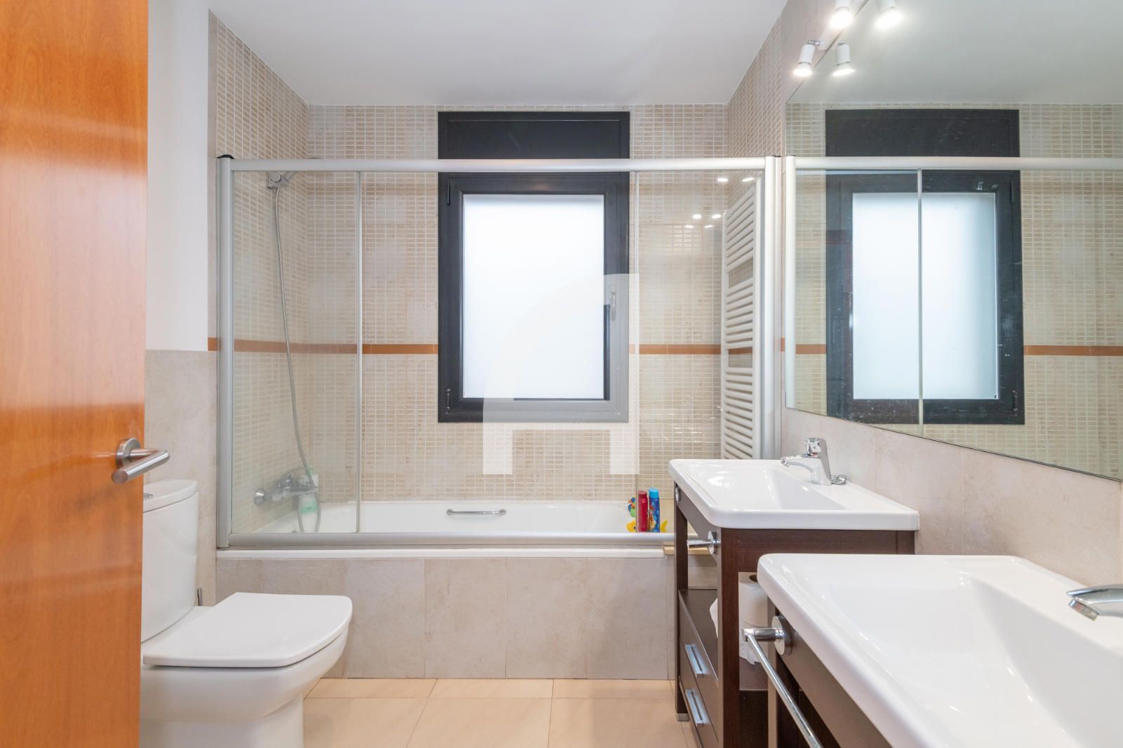 La zona de nit acull tres dormitoris dobles —un d’ells tipus suite— i dues habitacions individuals, totes amb armaris. També inclou un segon bany complet amb plat de dutxa. Des d’un dels dormitoris principals s’accedeix a una terrassa solàrium amb esplèndides vistes a la muntanya.