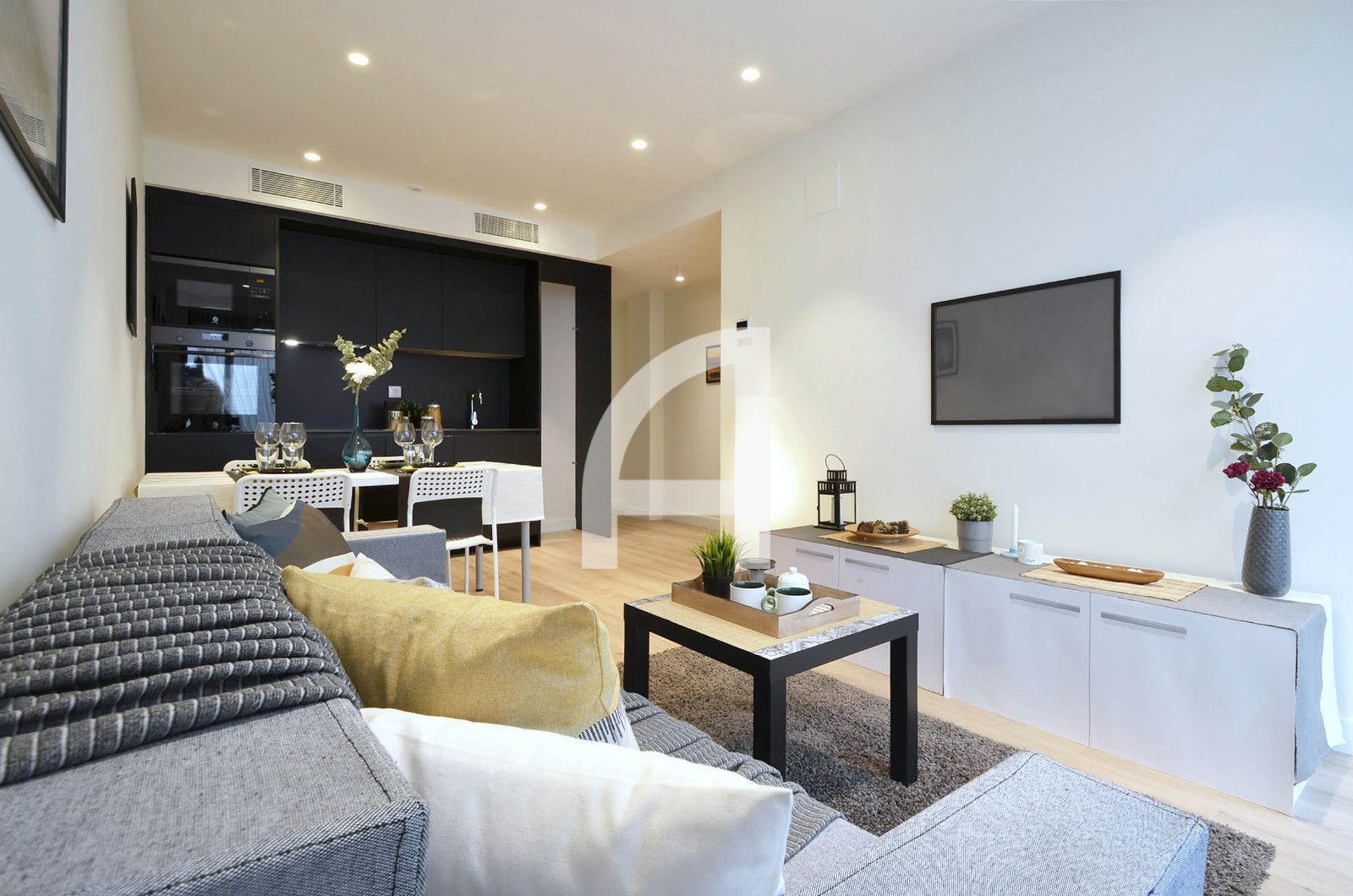 La cuina americana està moblada i equipada, llista per a entrar a viure, amb acabats moderns que faciliten la convivència diària. Els armaris de paret aporten un emmagatzematge intel·ligent sense restar protagonisme a les estades, mantenint l'espai ordenat i funcional.