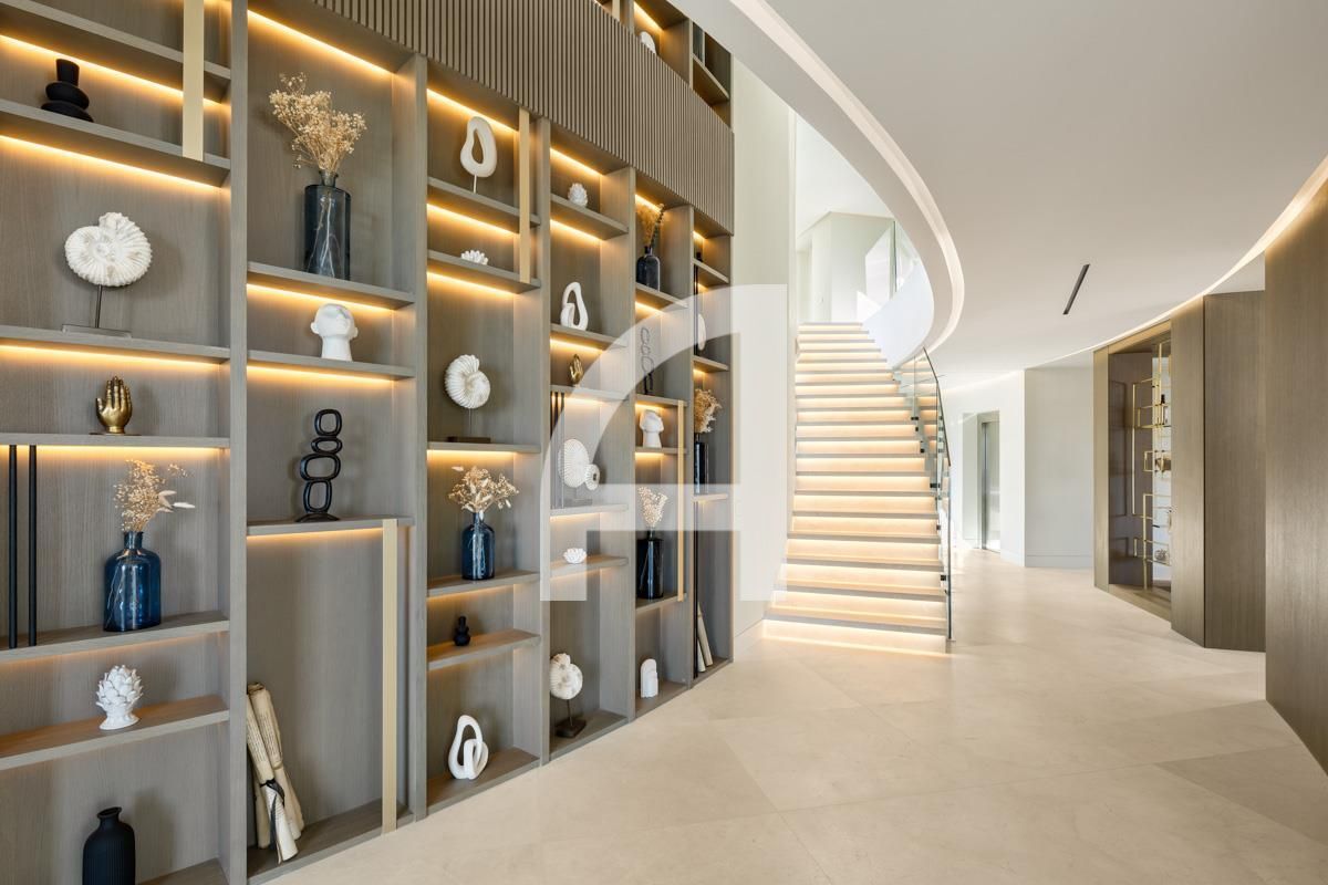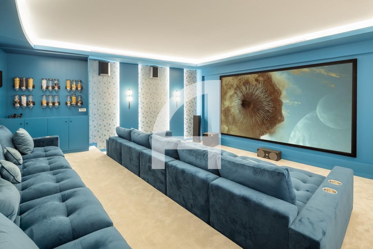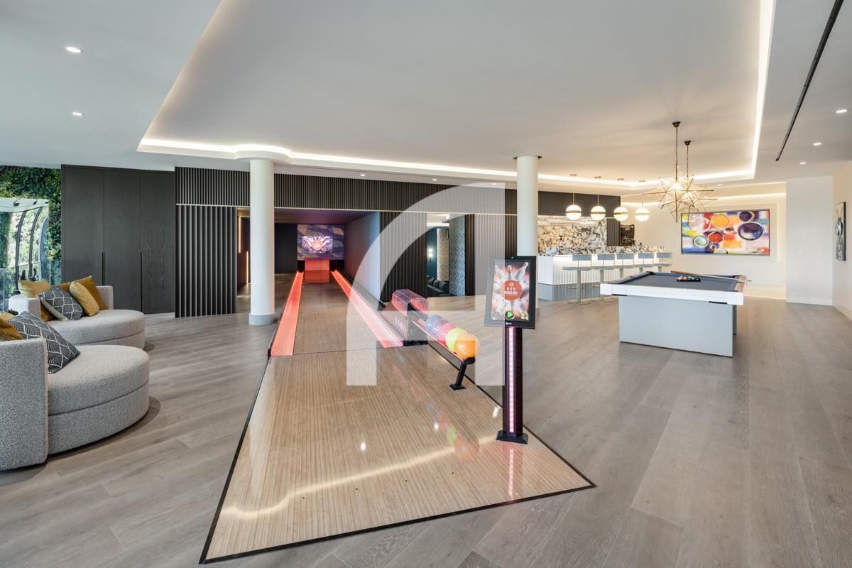 This magnificent residence features a state-of-the-art gourmet kitchen complemented by stunning external water features, soaring double-height ceilings, and a master bathroom uniquely designed by a renowned fashion designer. Indulge in leisure with a dedicated games area complete with a bowling alley, an expansive rooftop terrace perfect for entertaining, and uninterrupted sea vistas. The outdoor amenities include access to a luxurious beach club and inviting indoor/outdoor pool areas, all contributing to a lifestyle of elegance.