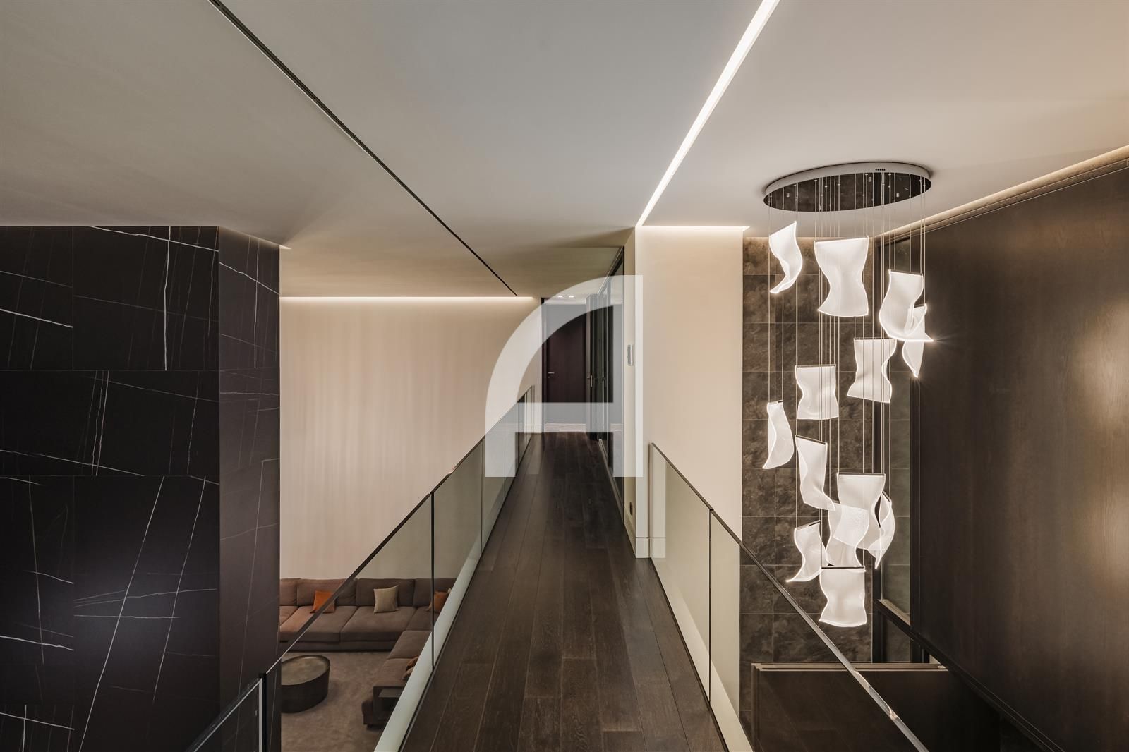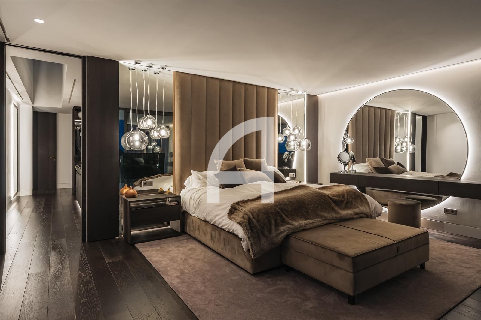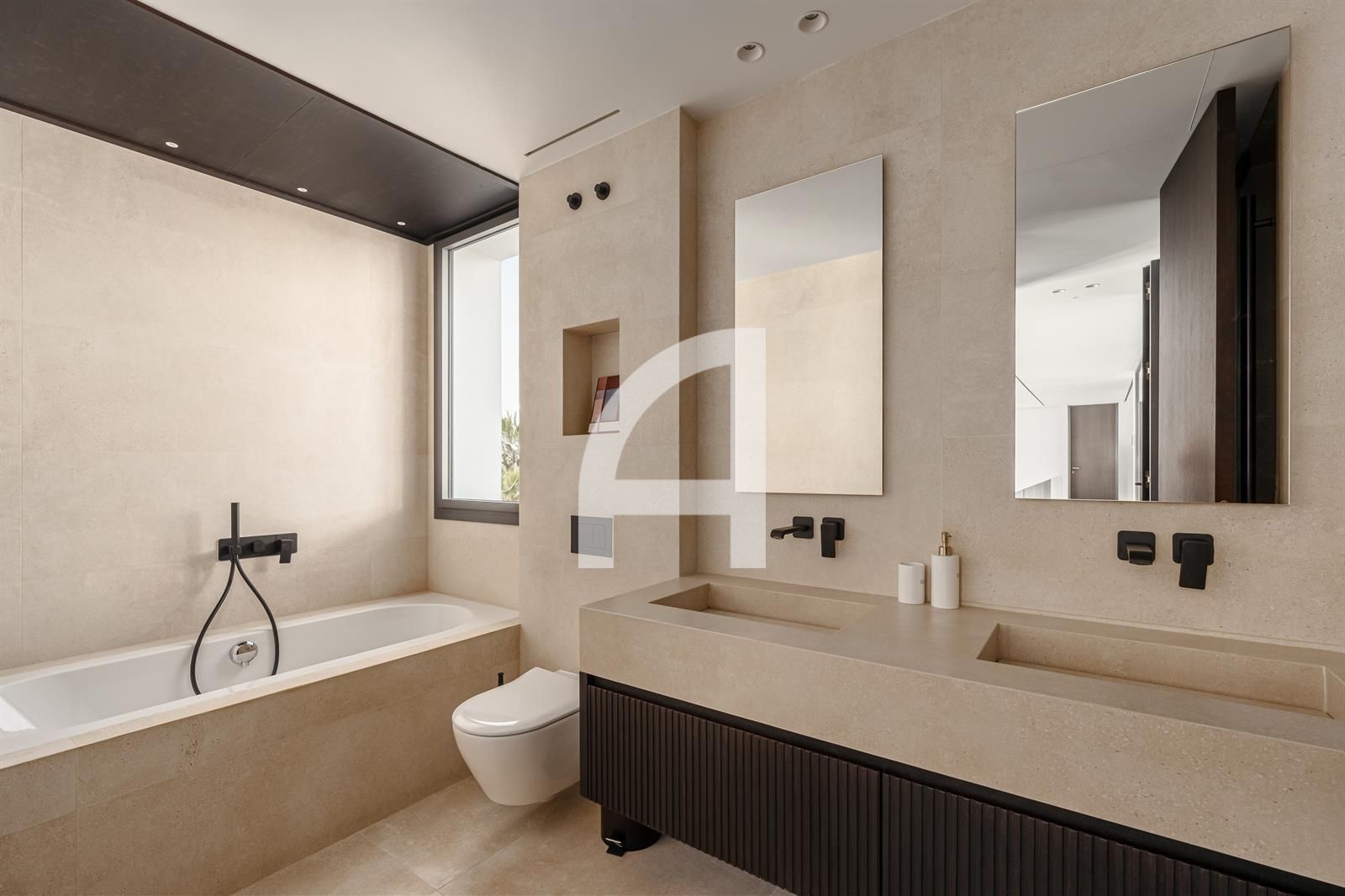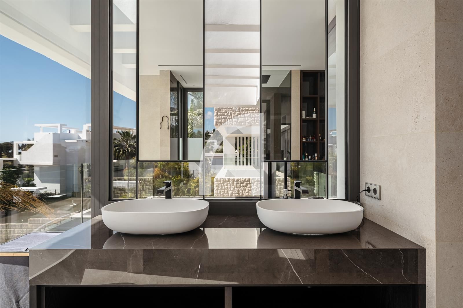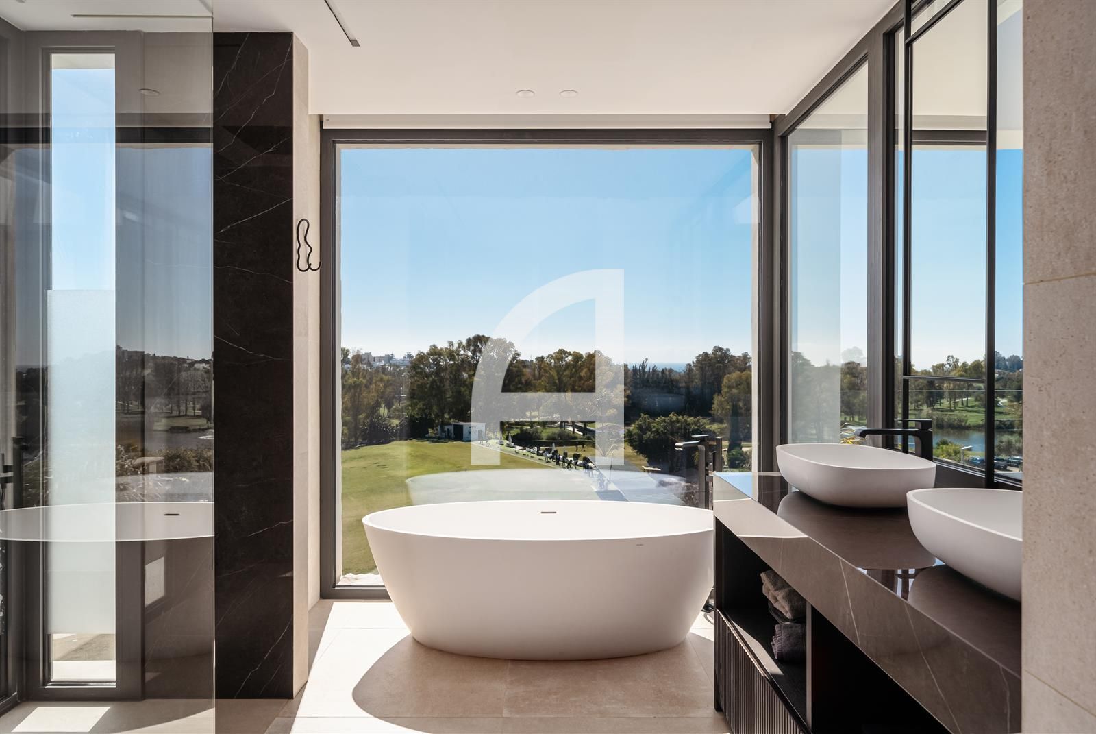 Set on an expansive plot, the villa's architecture harmoniously integrates with its picturesque surroundings, showcasing a modern elegance that resonates throughout the property. Meticulously designed for year-round comfort, it features advanced amenities including air conditioning, solar panels, underfloor heating, and a sophisticated home automation system.