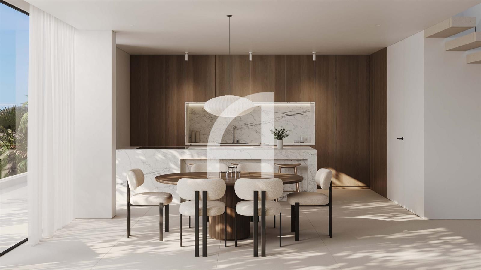 This architectural marvel harmoniously blends minimalist aesthetics with utmost comfort, creating an idyllic Mediterranean retreat. Floor-to-ceiling windows and open-plan living areas are meticulously crafted to invite an abundance of natural light, fostering a serene atmosphere that effortlessly connects indoor and outdoor spaces.