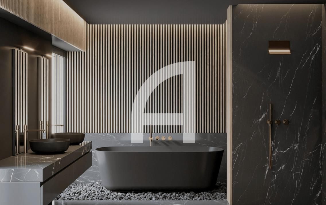Located in the basement is a large garage along with a well-appointed laundry room. The cinema room promises entertaining evenings, while two additional bedrooms with a shared bathroom provide ample accommodation for guests, with the option to expand further. A splendid solarium awaits above, complete with a pergola, seating area, barbecue space, and a jacuzzi for ultimate relaxation.