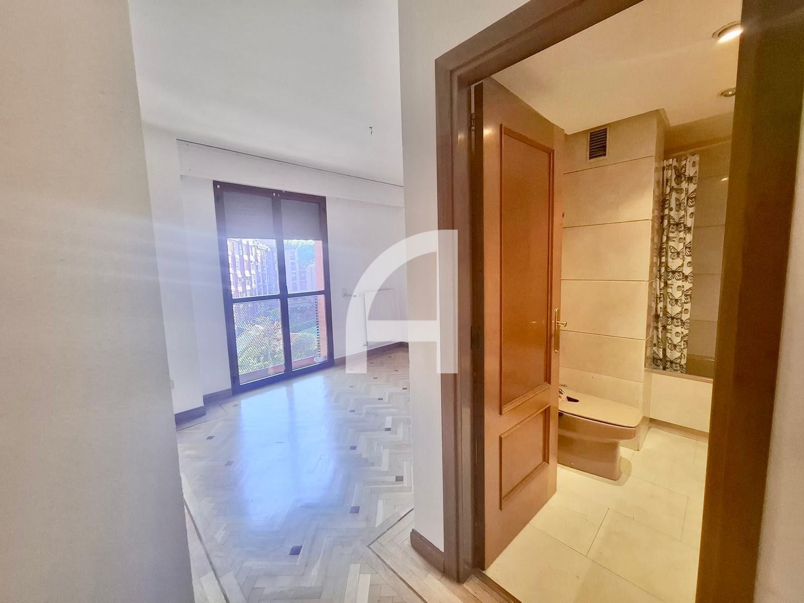 Continuando hacia la derecha está el 2º dormitorio con armario empotrado de 2 puertas, el baño de 4 piezas con bañera y la habitación principal con armario de 4 puertas y baño de mármol en suite.