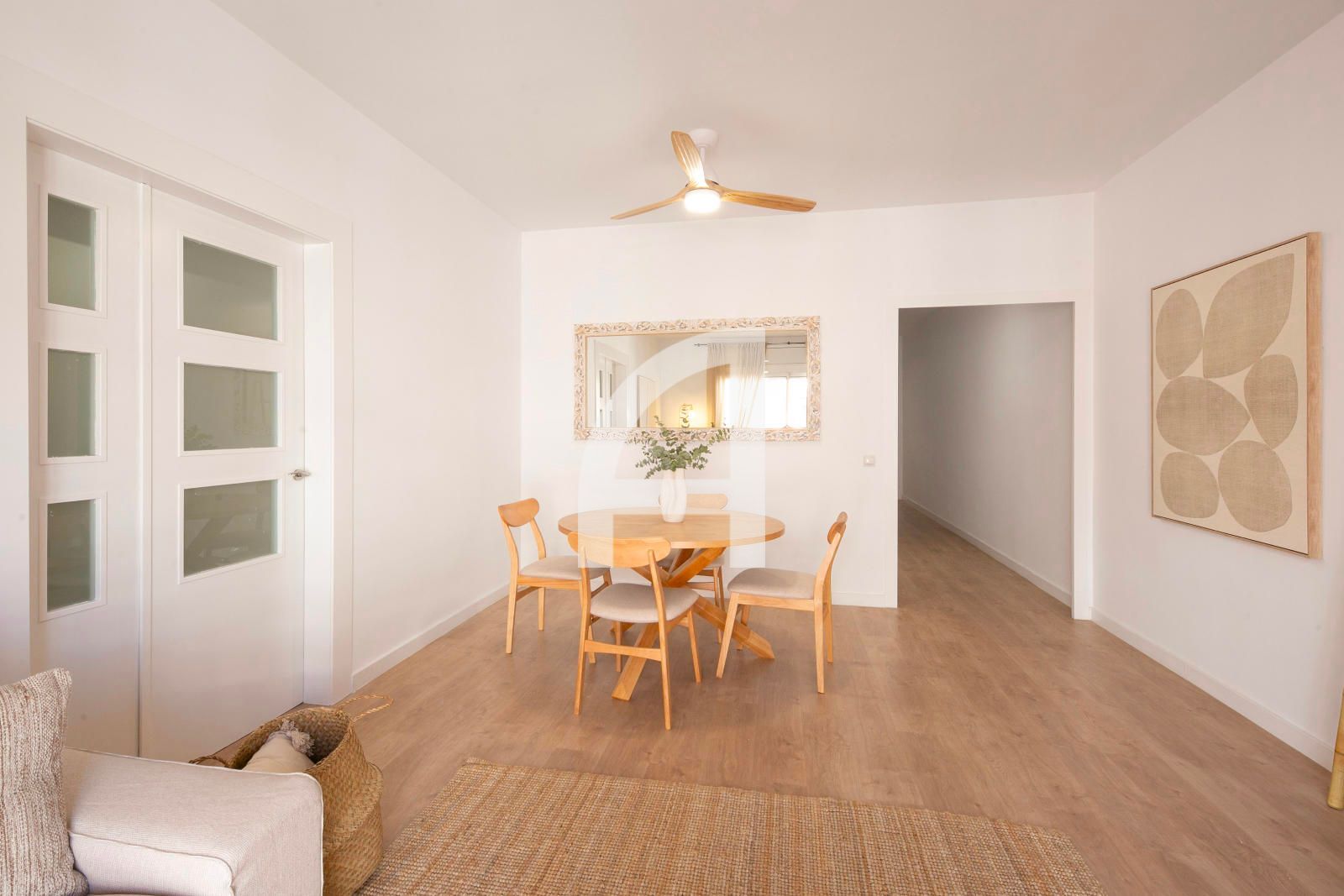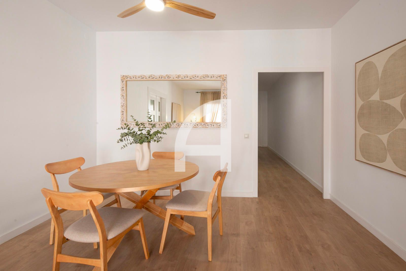 Sus 95 metros cuadrados se distribuyen en un saló luminoso, una cocina totalmente equipada con zona de aguas, tres habitaciones, tres dobles y una individual, y también dispone de dos baños completos.