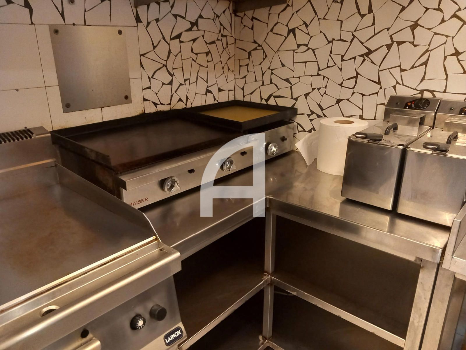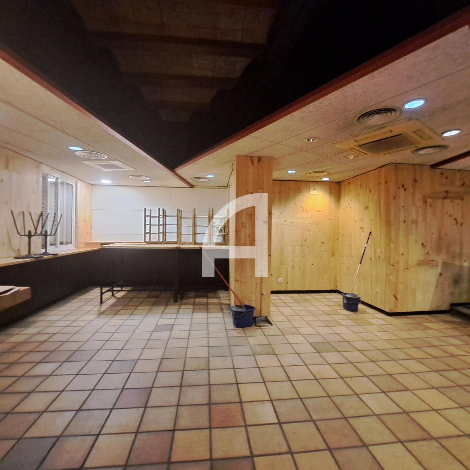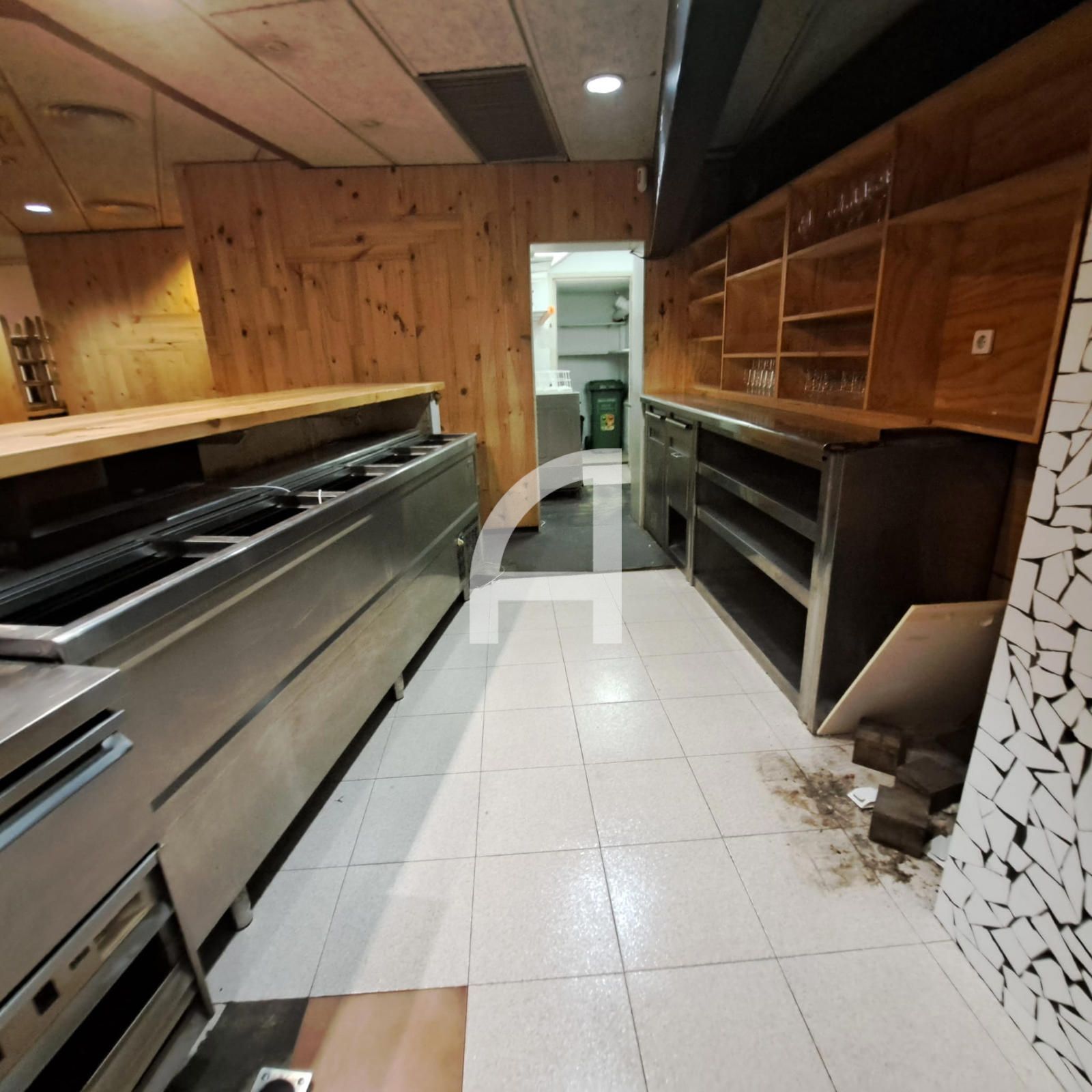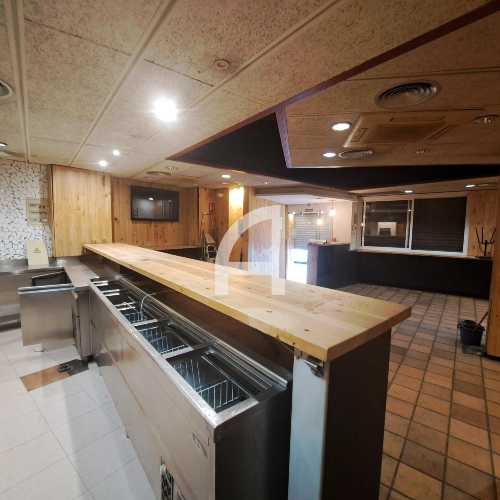 Distribuido en dos plantas, la planta principal ofrece un espacio amplio con distribución abierta, ideal para restauración y atención al público. La barra de madera y metal crea un conjunto funcional para el servicio directo, con estanterías para copas y amplios compartimentos de almacenamiento. El pavimento de gres en tonos cálidos aporta durabilidad y una estética agradable que facilita la limpieza y el uso diario. Las paredes combinan revestimientos de madera y mosaicos, que aportan carácter sin perder la practicidad necesaria para un concepto de restauración. La iluminación empotrada garantiza visibilidad adecuada en todas las áreas y mantiene un ambiente profesional. Además, encontramos en la misma planta, la zona de fregadero y acceso por escaleras al sótano.