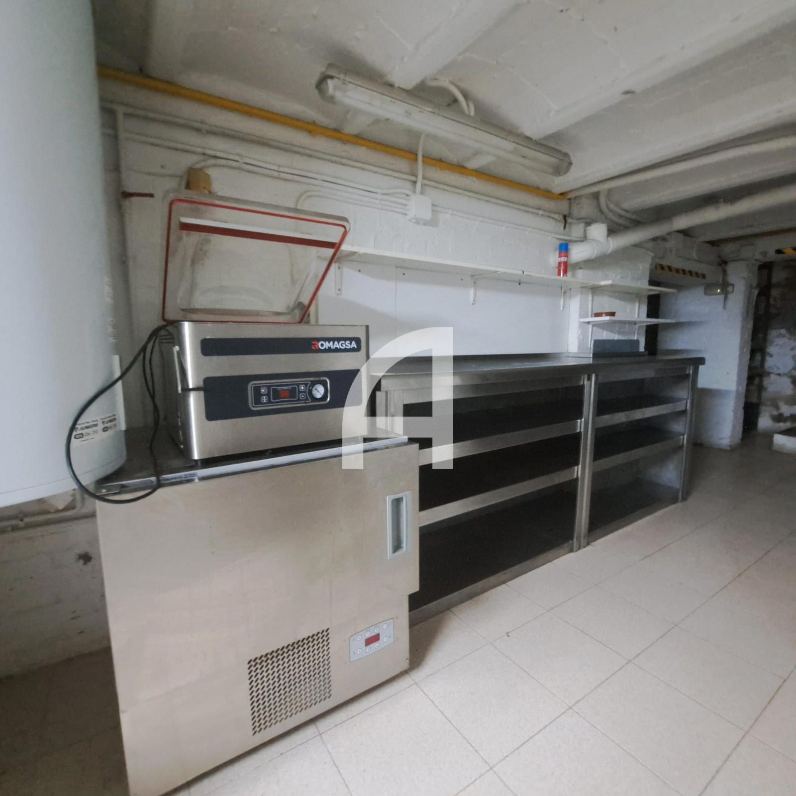 El sótano complementa la operativa con la zona de cocina y almacén, acondicionada para adaptarse a diferentes conceptos. En esta planta se sitúan dos aseos y la zona de cocina, equipada con nevera y mobiliario en acero inoxidable, listos para su puesta en marcha. La distribución permite separar claramente áreas de producción, limpieza y almacenamiento, con acceso directo desde la planta principal mediante montaje de montacargas para platos.