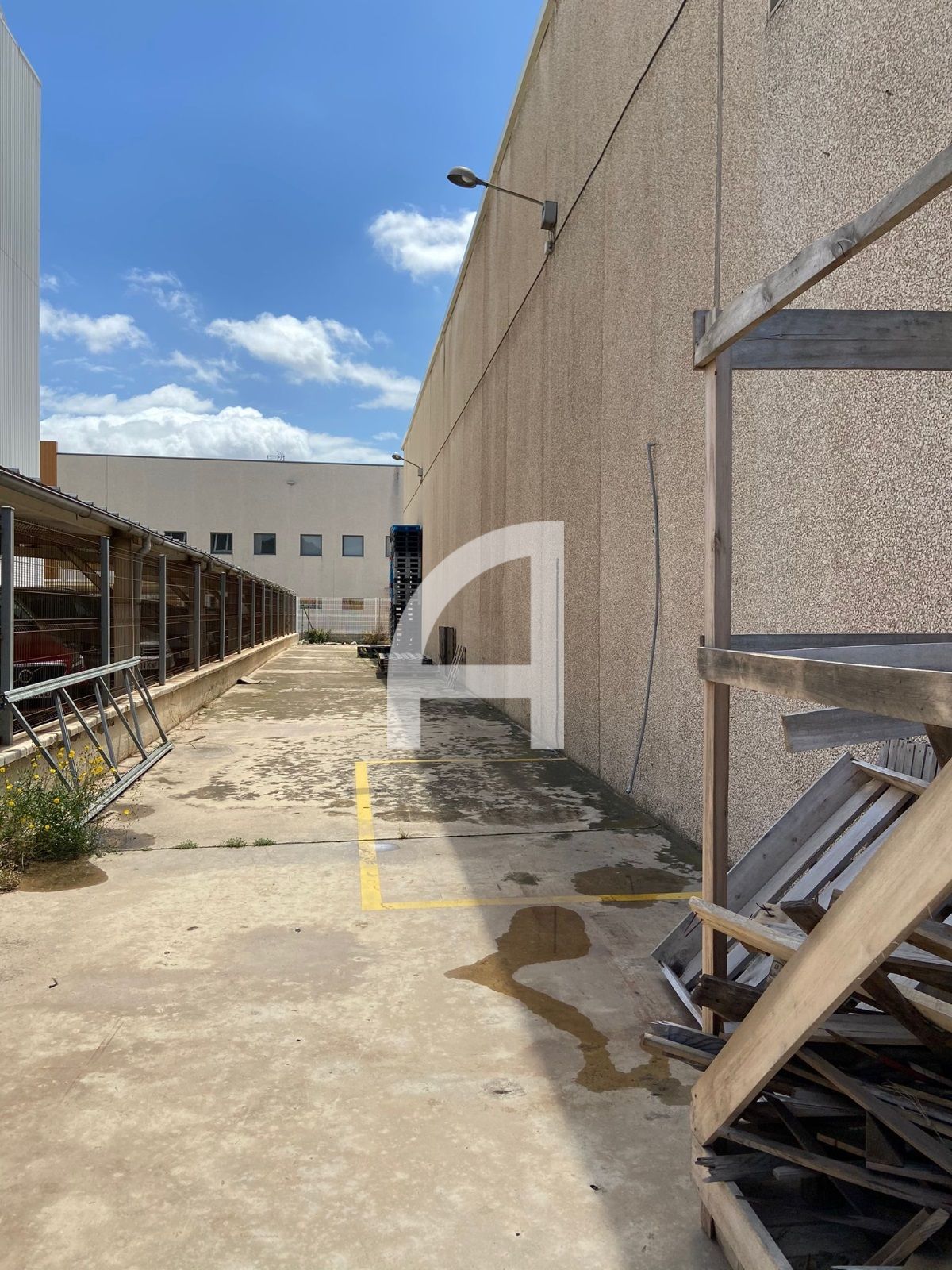 El conjunto cuenta con patio delantero de unos 100 m² y un patio adicional para paso de evacuación, además de puerta basculante y peatonal para facilitar el acceso y la carga y descarga.