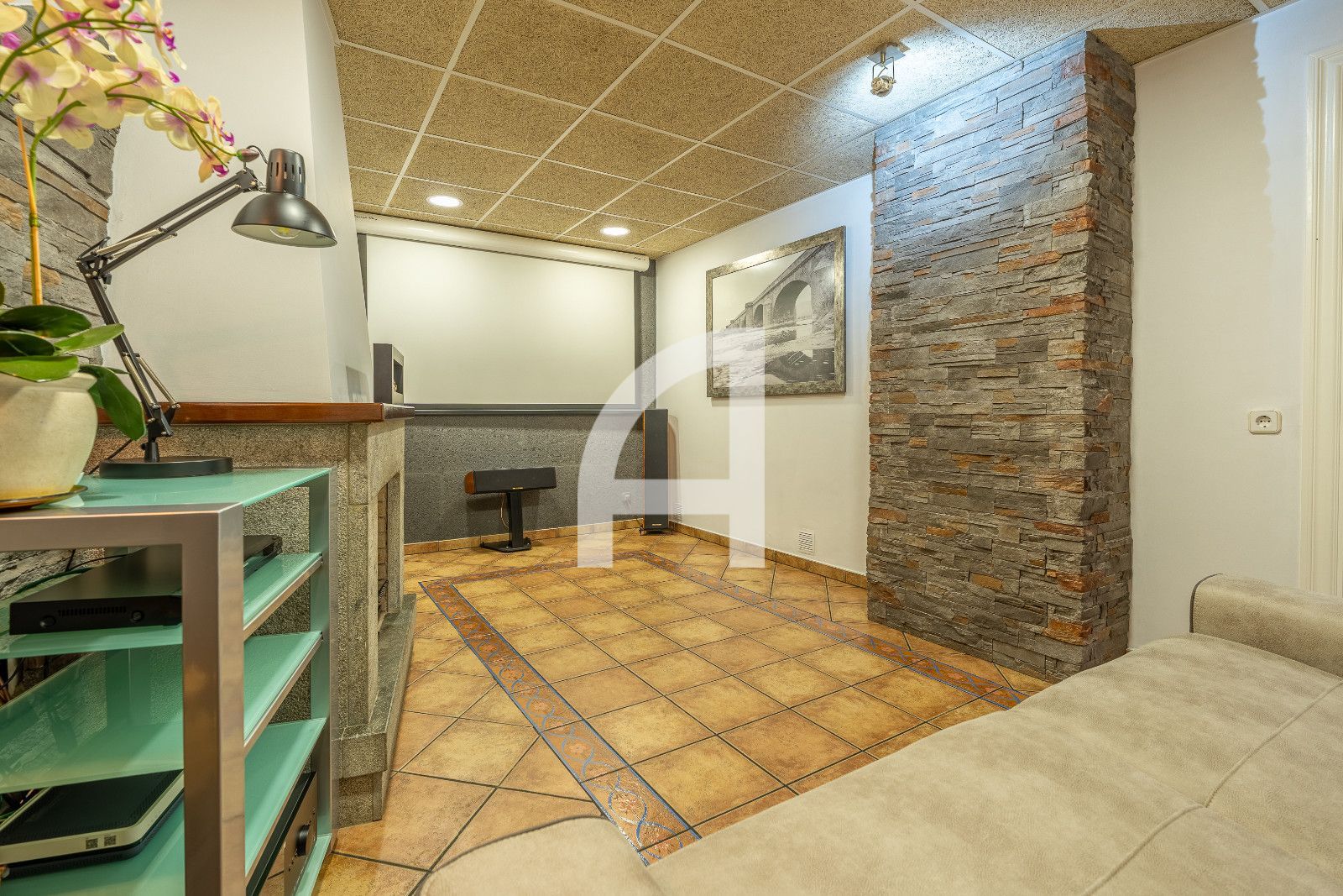 La planta -1 alberga una gran sala con cocina totalmente equipada, un espacio destinado a cine con chimenea y una zona de aparcamiento y trastero. Existe también una habitación adicional con posibilidad de uso flexible, más un baño con plato de ducha y aire acondicionado. Este nivel se plantea como área de ocio o de familia extensa, con distribución que favorece la separación de actividades sin perder proximidad a las zonas comunes. El conjunto está pensado para optimizar cada metro, manteniendo buena circulación y accesibilidad para todos los miembros del hogar.