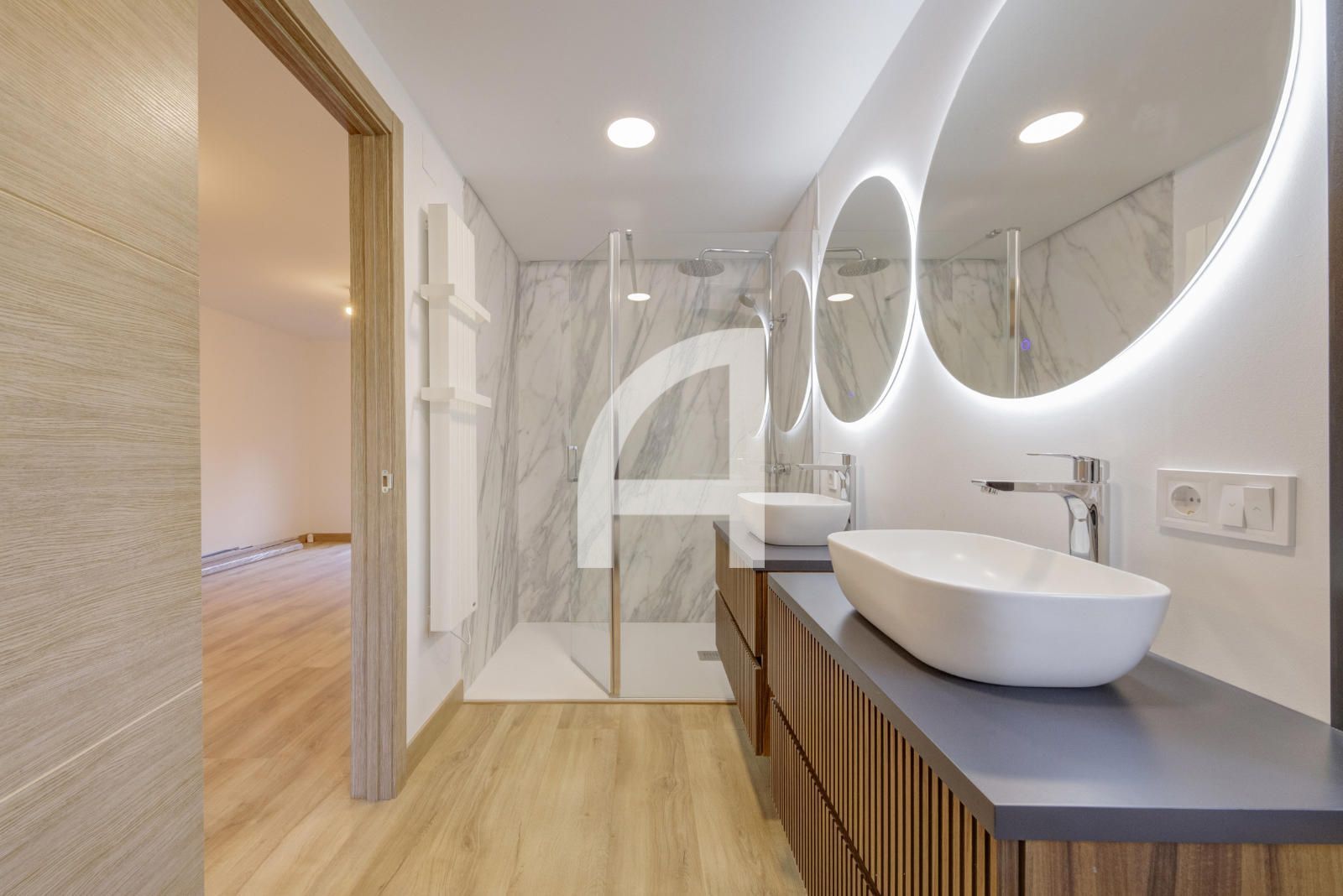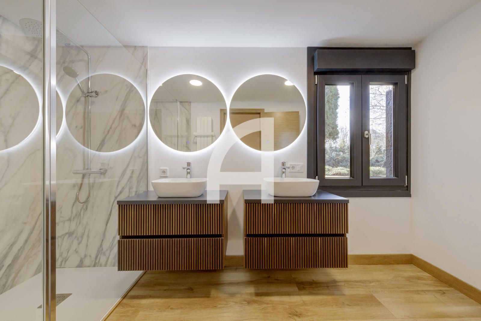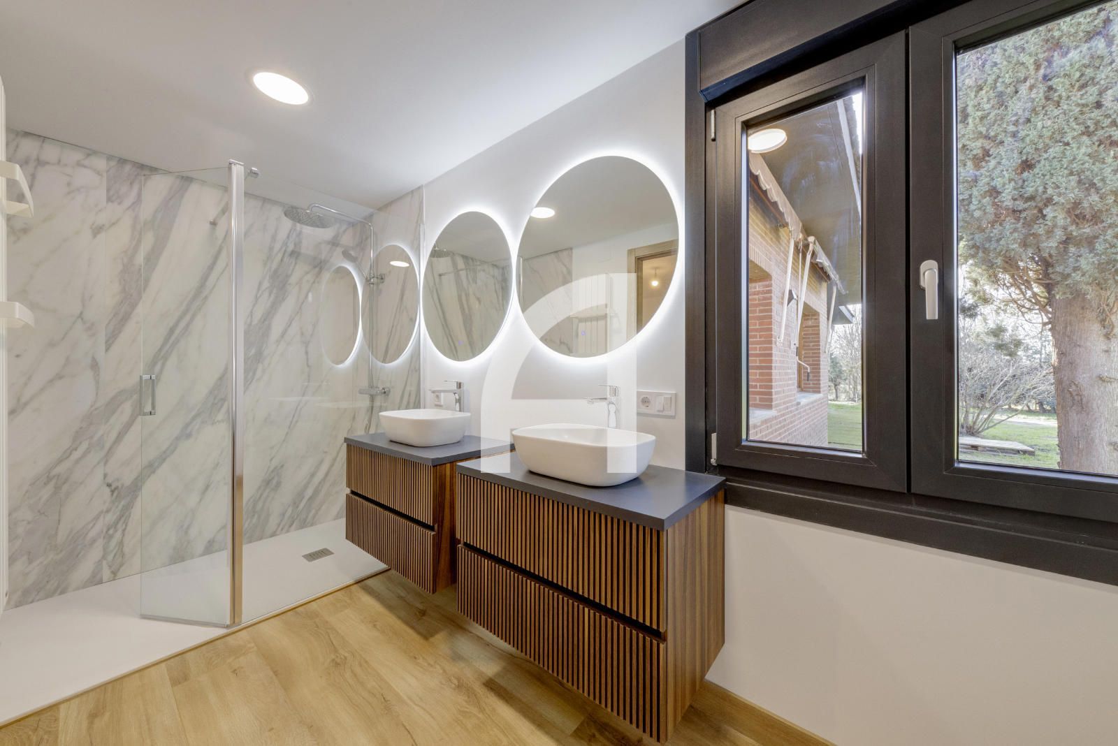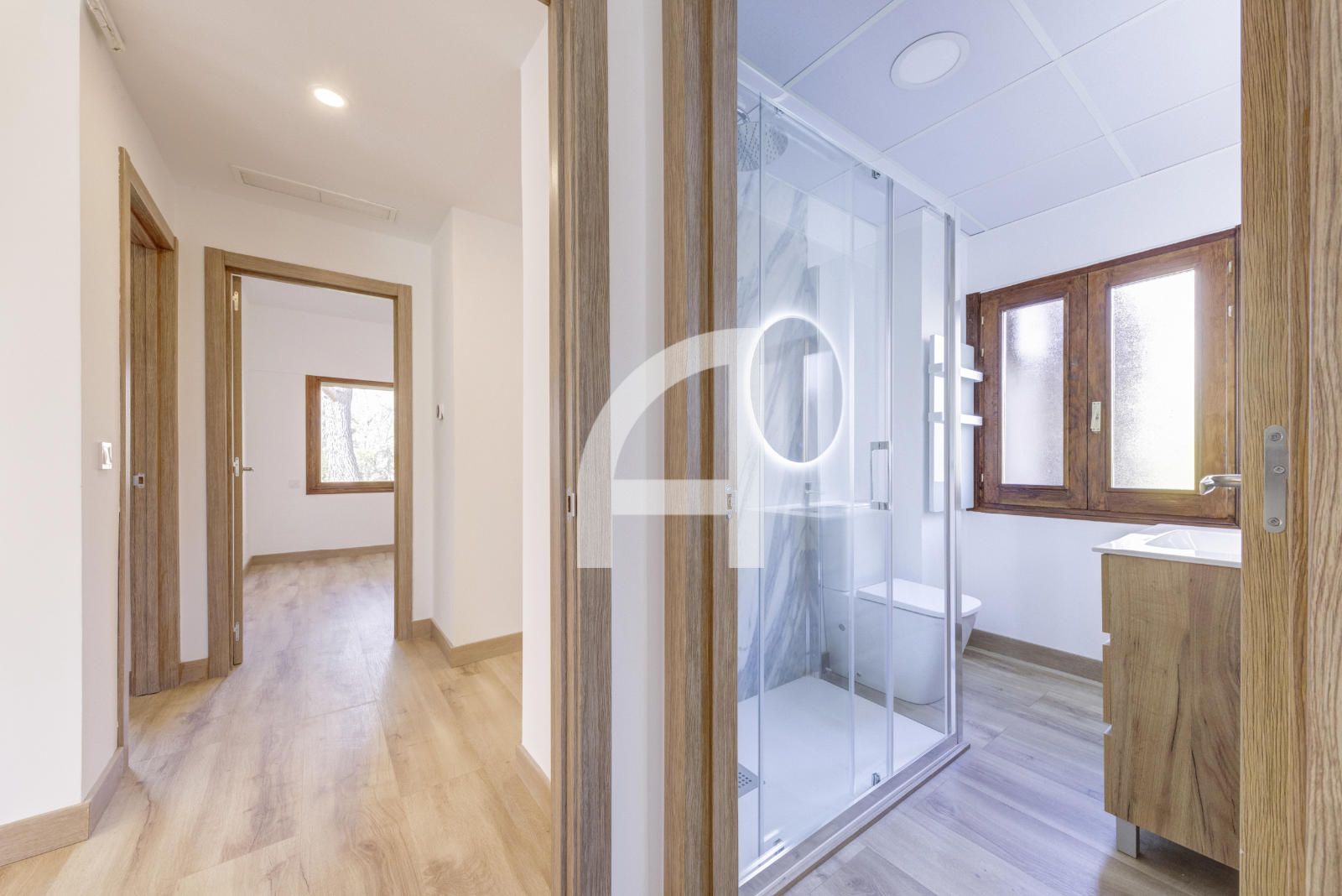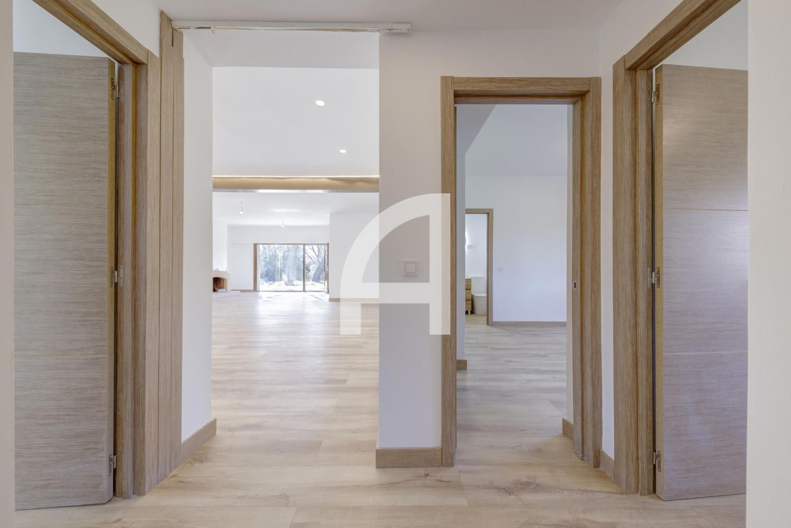 Cuenta con 4 habitaciones, la principal de 30 metros con vestidor de 20m2 que ofrece amplitud y confort y con posibilidad de hacer una bonita y luminosa zona de trabajo. Todas las habitaciones tienen baño en suite con plato de ducha, mas aseo de cortesía, para mayor comodidad de la familia y visitas. El almacenamiento está asegurado con los armarios empotrados de todas las estancias de la zona de descanso.
