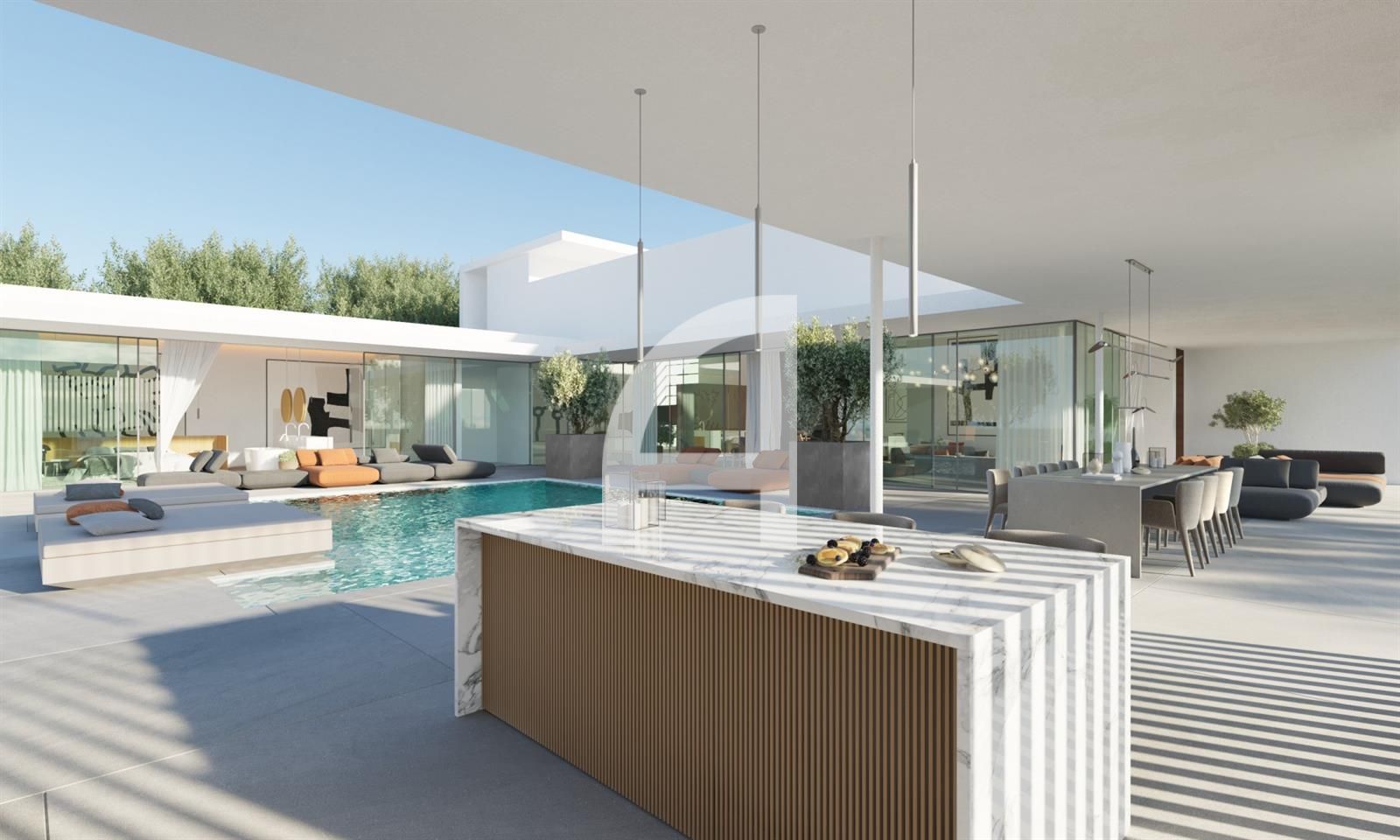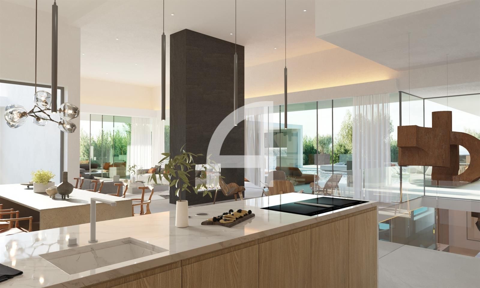 Al ingresar a esta maravilla, se verá recibido por un amplio vestíbulo que conecta ambos niveles, y el salón principal le dará la bienvenida con su impresionante altura de 7 metros y vistas al jardín. La cocina abierta se integra a la perfección con el salón, mientras que los suelos de cerámica con calefacción por suelo radiante en la sala principal le proporcionarán un confort inigualable.