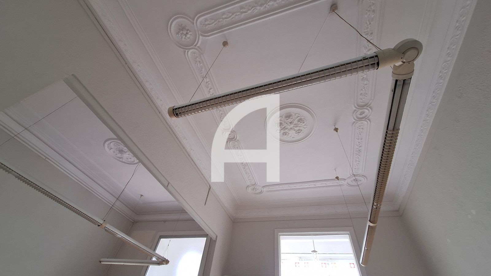 La superficie viene configurada por diversas salas, amplias todas, con una zona orientada a exterior/calle, y otra a interior de isla y galería. Dispone de climatización, doble núcleo de aseos, techos altos, luminarias, altillo para archivo, y un pequeño office.