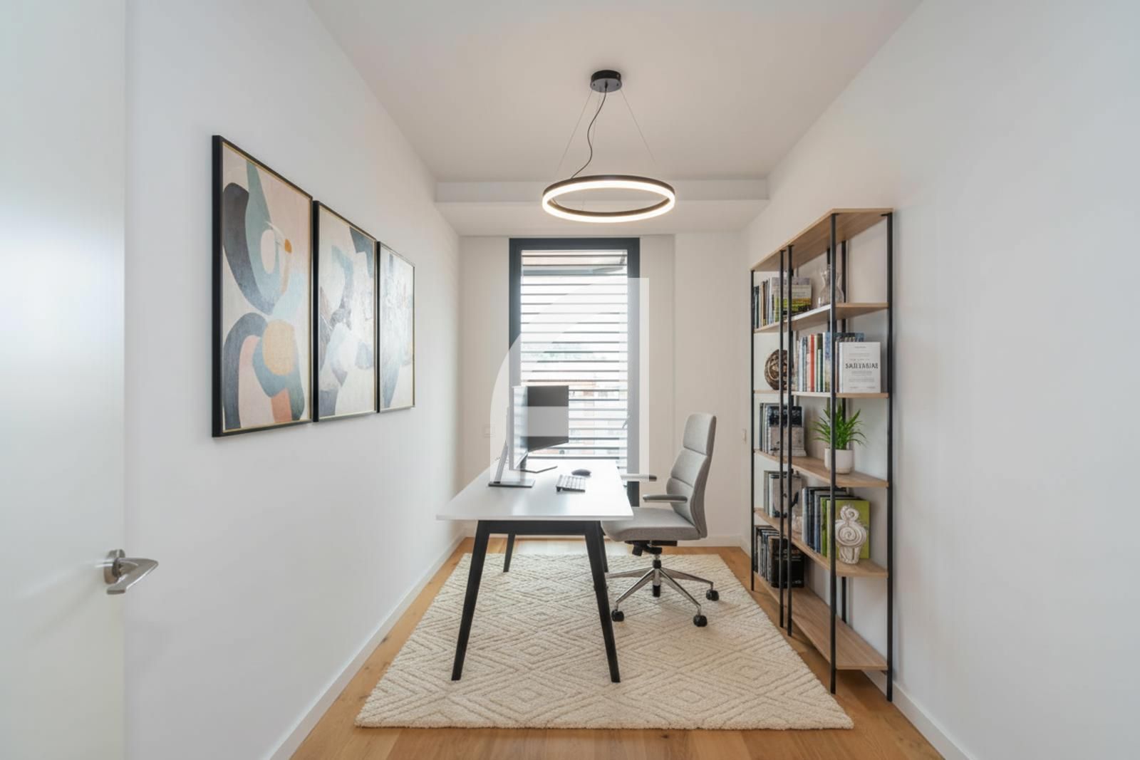 El diseño del piso se caracteriza por su luminosidad, cuenta con grandes ventanales que permiten que la luz natural inunde cada rincón, creando un ambiente cálido y acogedor. La amplitud de sus cinco habitaciones ofrece versatilidad, ideal para familias o para quienes desean contar con espacios adicionales que pueden usarse como oficina o sala de invitados.