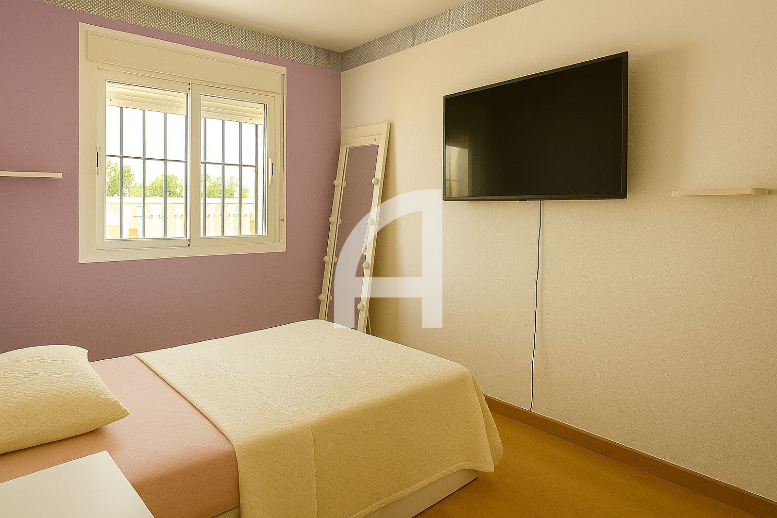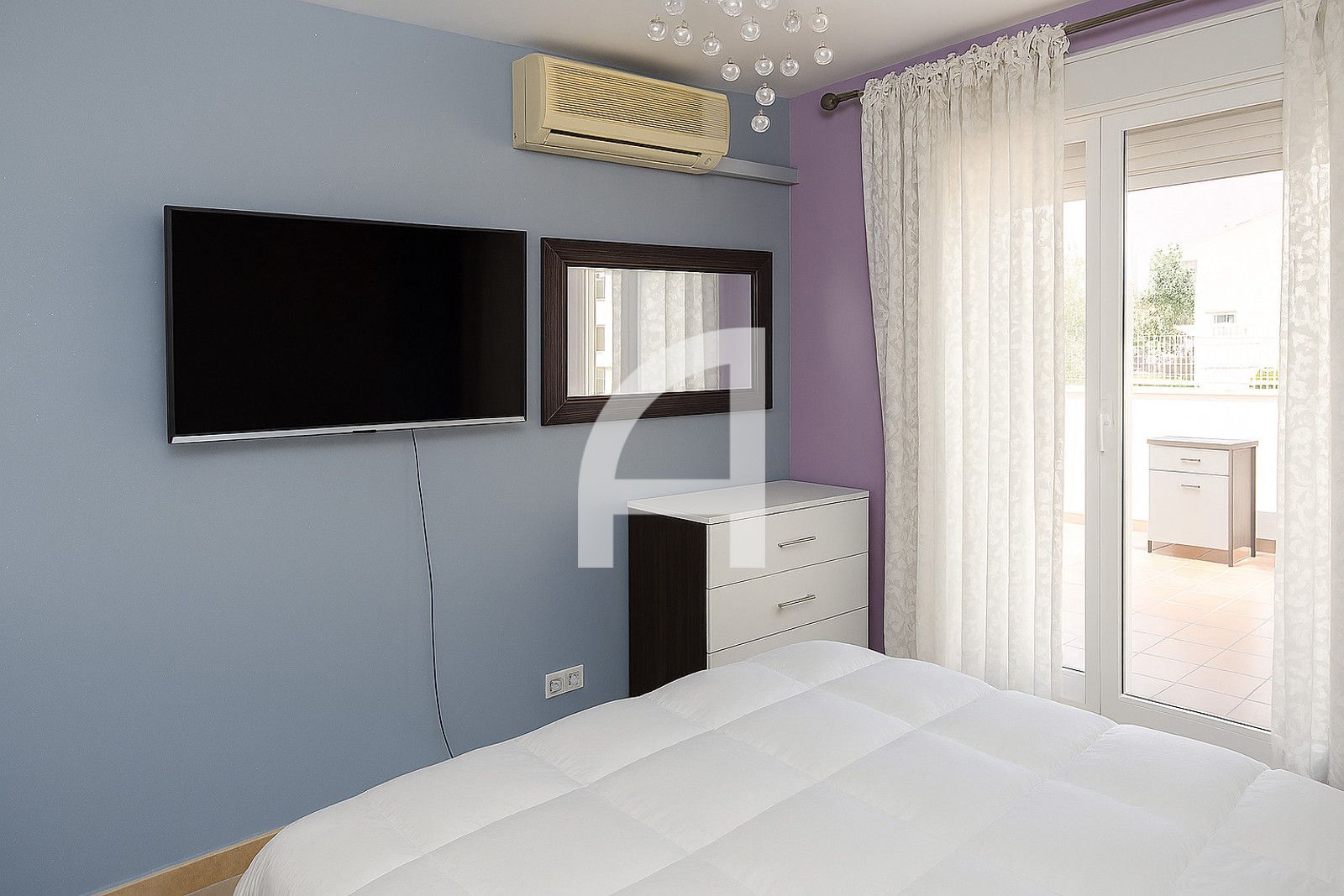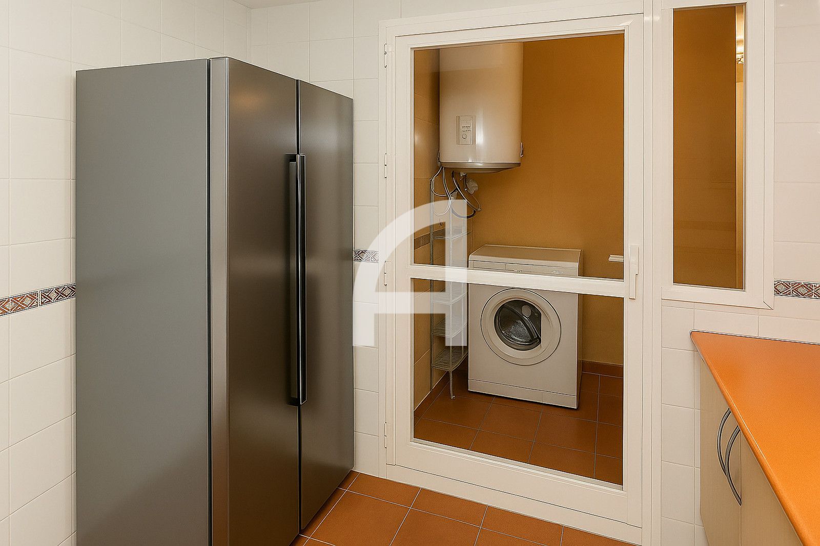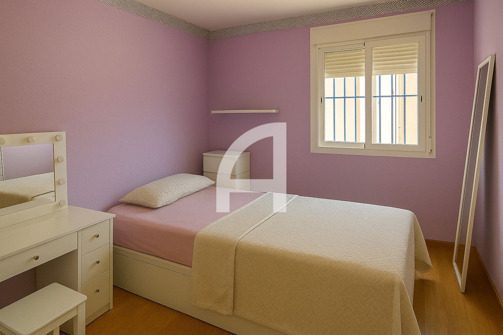 La vivienda se presenta con cocina amueblada y equipada, amueblado y con armarios empotrados que optimizan el espacio. El sistema de calefacción por aerotermia aporta eficiencia y confort durante todo el año, acompañado de aire acondicionado para mantener la temperatura adecuada.