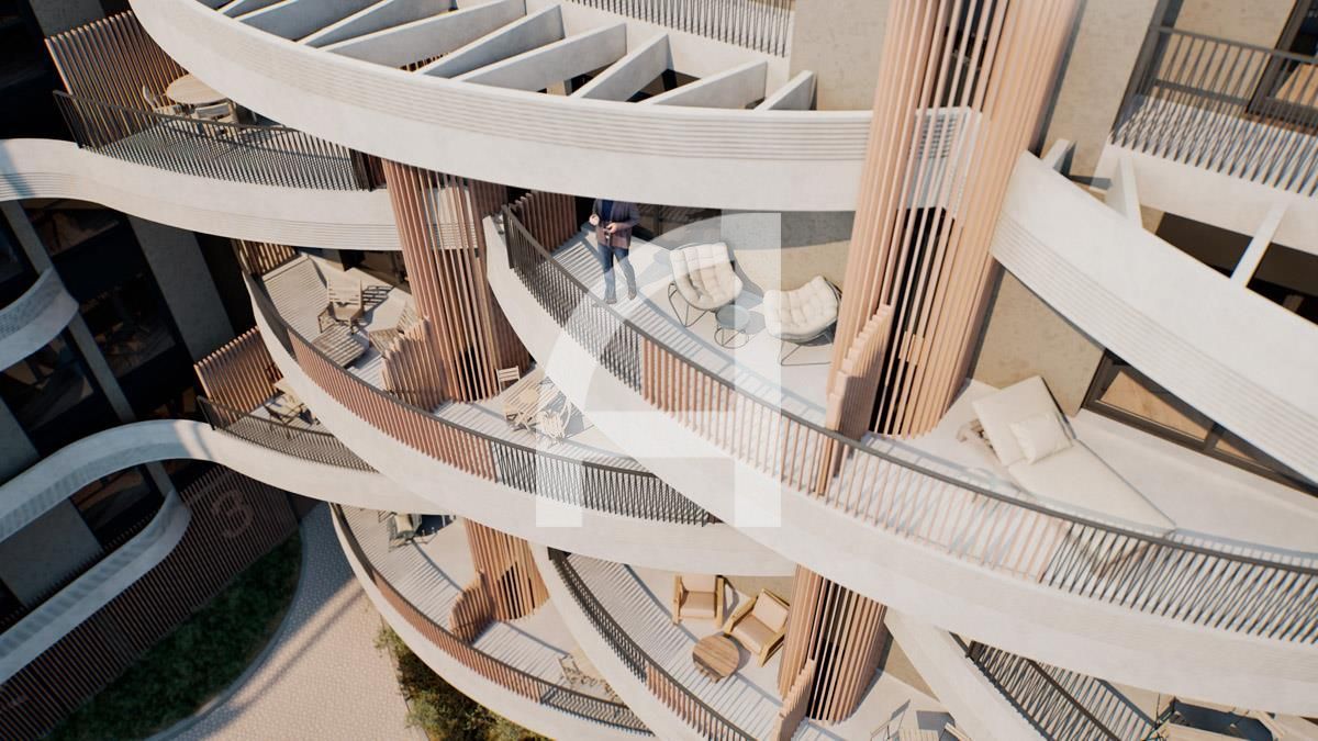 La propuesta se basa en un nuevo concepto comunitario que promueve la armonía con el entorno, destacando el uso de la economía circular como pilar fundamental del proyecto. Con una extensión de 7,722.05 m², este complejo alberga 165 viviendas distribuidas en cinco plantas, cada una con terrazas luminosas que aportan naturaleza y vida a cada hogar.