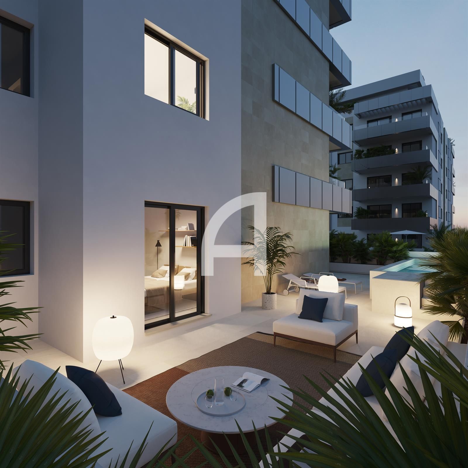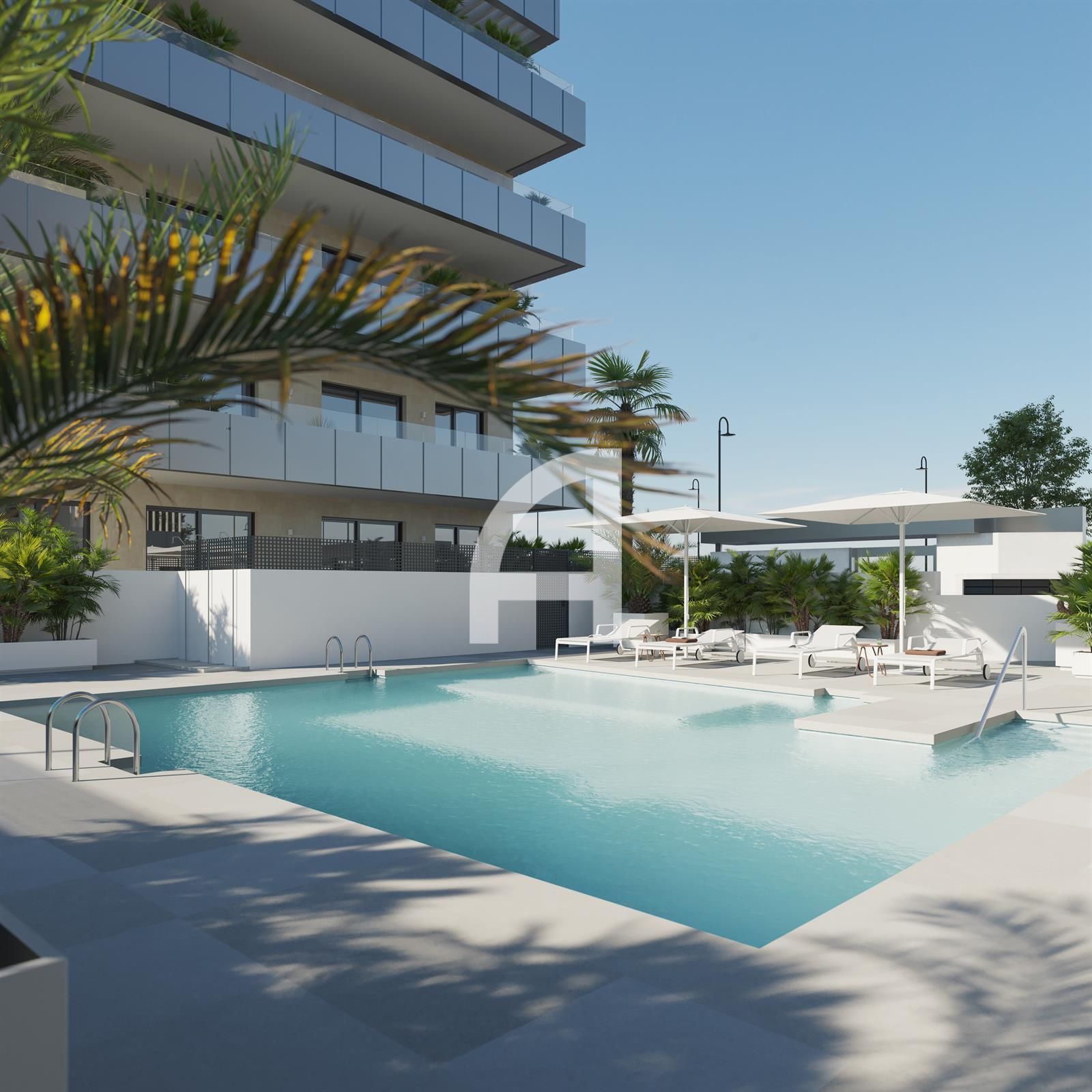 Consistiendo en apartamentos de una y dos habitaciones, esta comunidad residencial se distingue por su singular diseño exterior, creando un entorno estéticamente atractivo. Las amplias terrazas son el espacio ideal para el relax y la contemplación, con opciones que incluyen terrazas con piscinas privadas, ofreciendo así un oasis personal.
