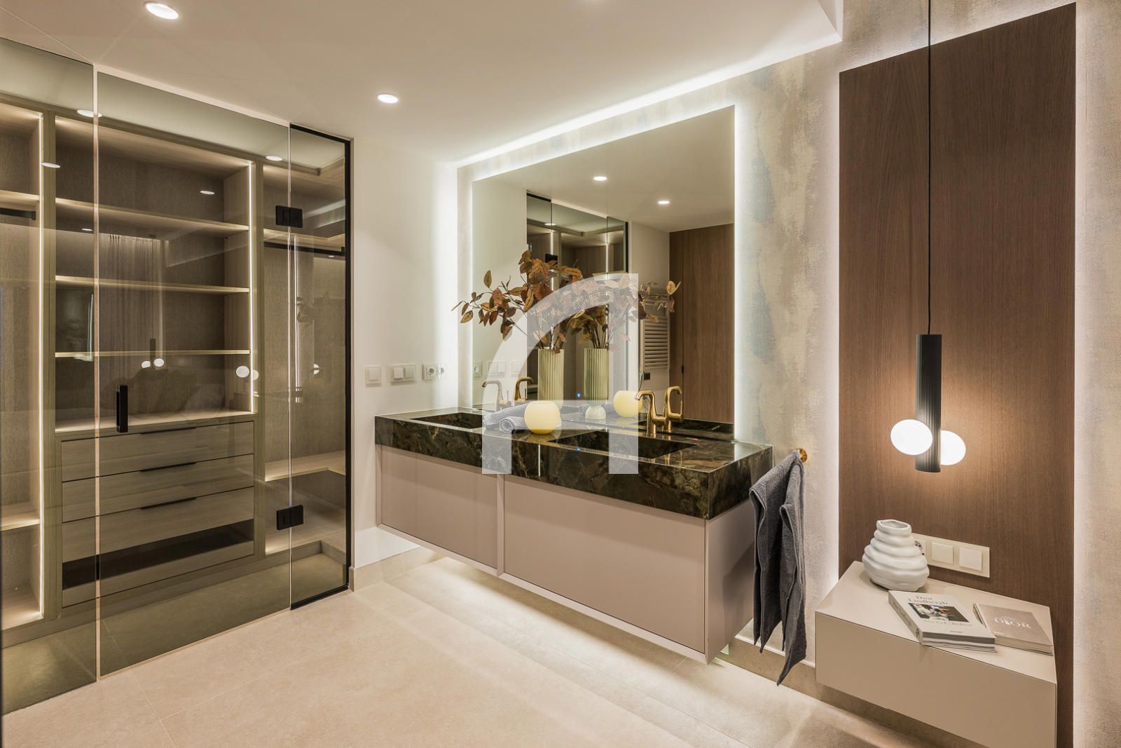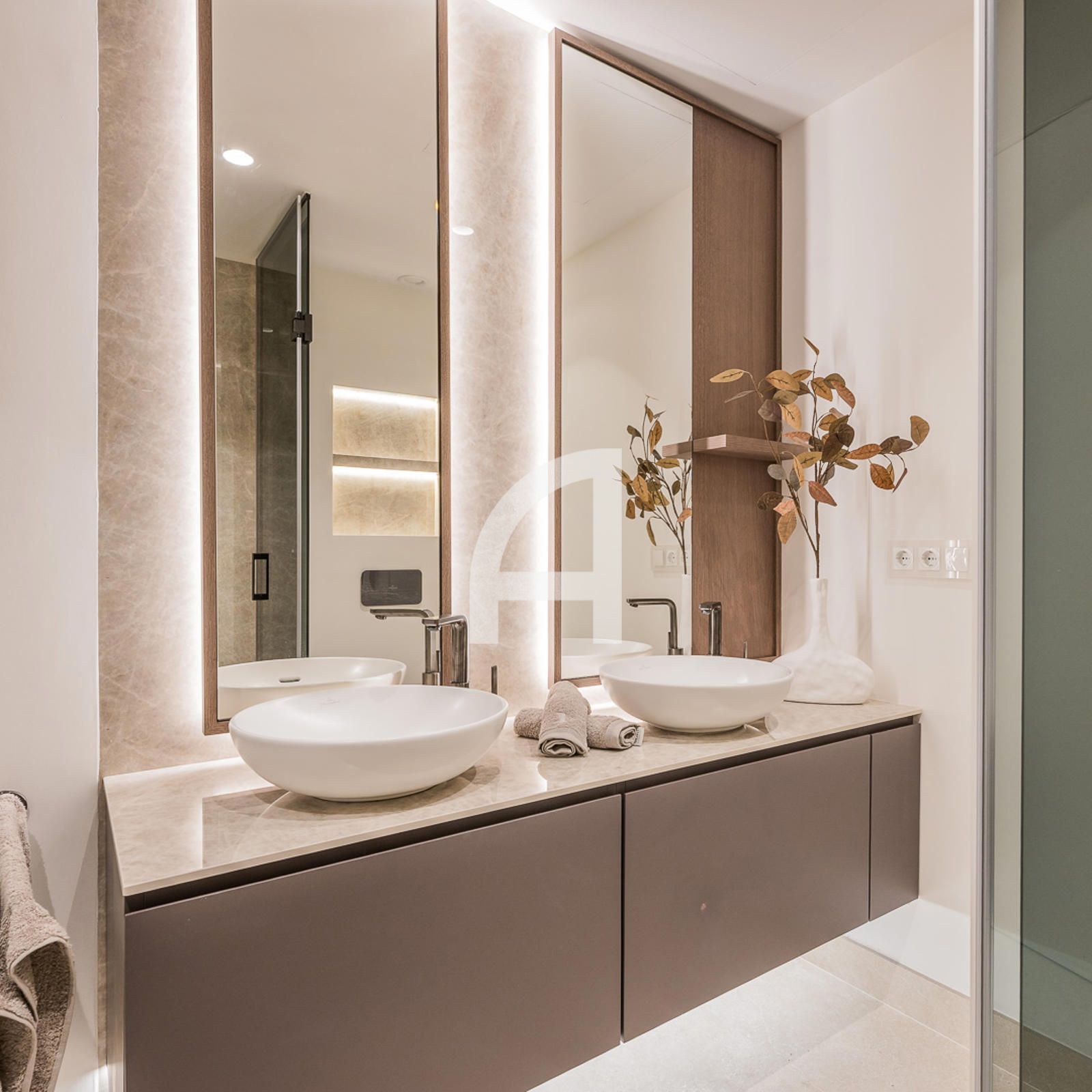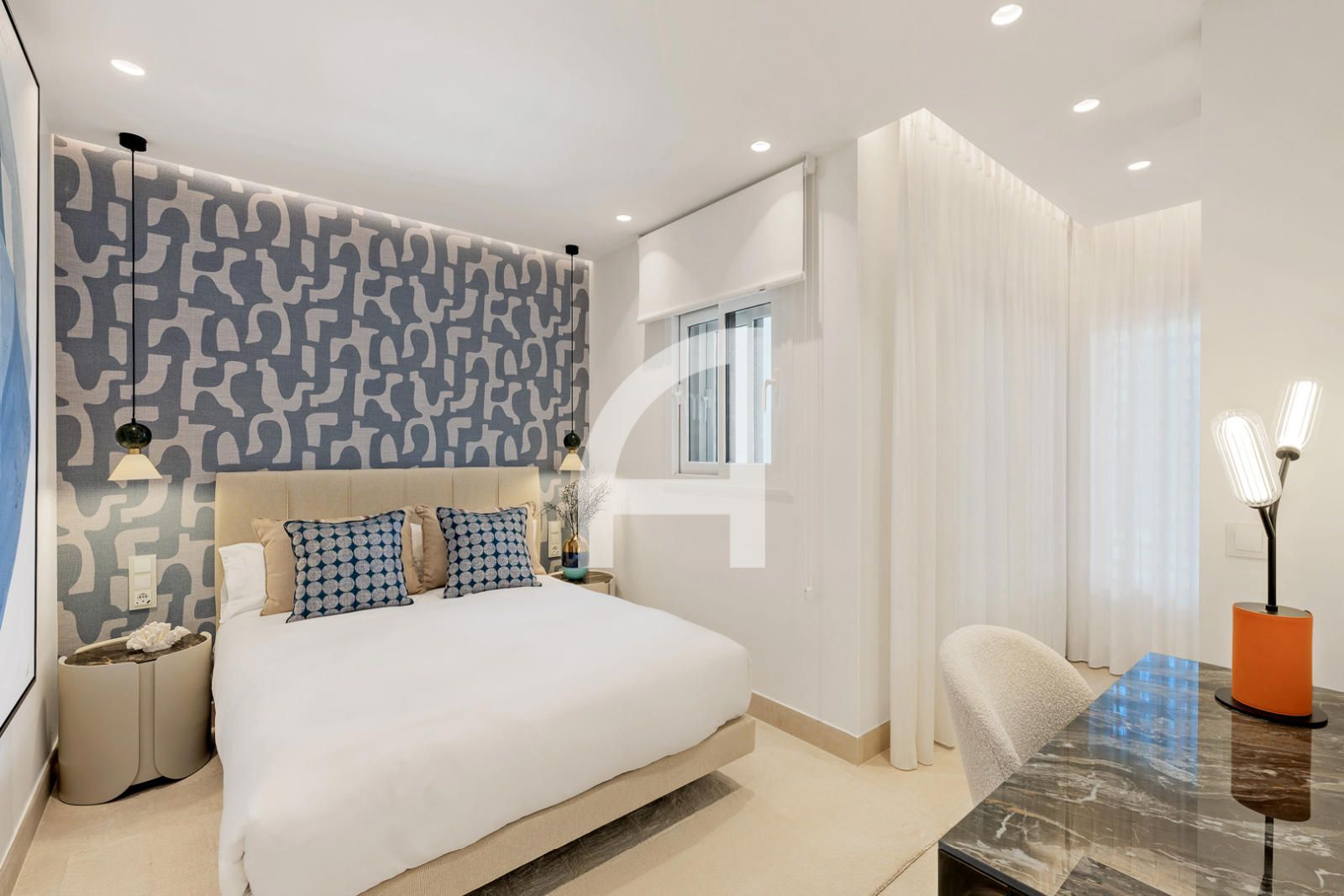 La vivienda dispone de un amplio salón-comedor de planta abierta con una cocina moderna totalmente equipada, diseñada con materiales de alta calidad y electrodomésticos de gama superior. Sus tres dormitorios y dos baños ofrecen un ambiente confortable y elegante, destacando un dormitorio principal con acceso directo a la terraza. Cada espacio ha sido renovado con detalles cuidadosamente seleccionados: iluminación ambiental, suelos contemporáneos, climatización eficiente, chimenea eléctrica y sistema de sonido integrado, creando una sensación de sofisticación y bienestar.