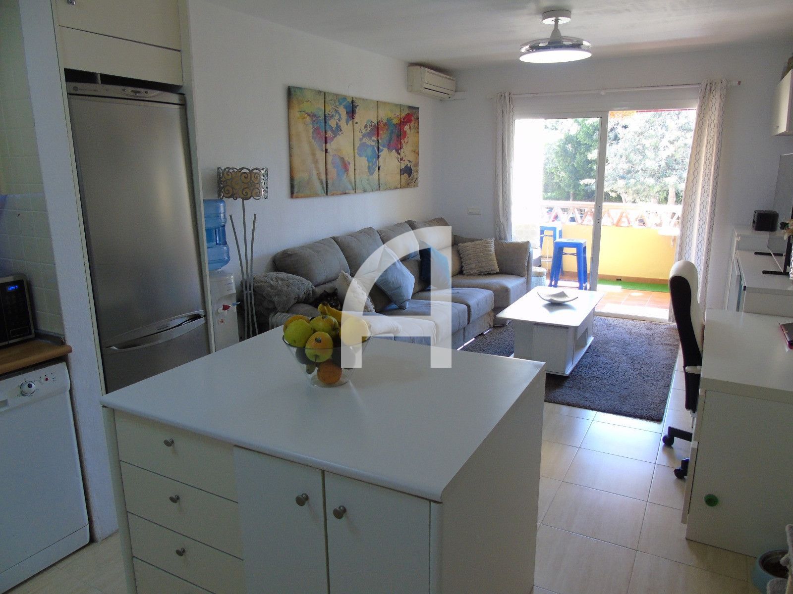 La vivienda dispone además de una terraza de 7 m2 que amplía la experiencia de uso diario y facilita momentos al aire libre. La cocina amueblada está integrada con el salón con aire acondicionado y calefacción con bomba de calor para garantizar confort económico y eficiente. Los armarios empotrados ofrecen almacenamiento práctico sin quitar espacio. El inmueble presenta un estado muy bueno y cuidado, con acabados modernos y una estética actual que facilita la personalización sin grandes obras.