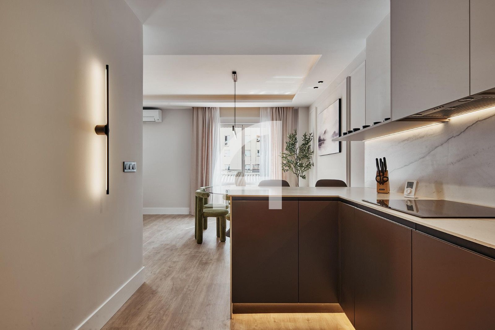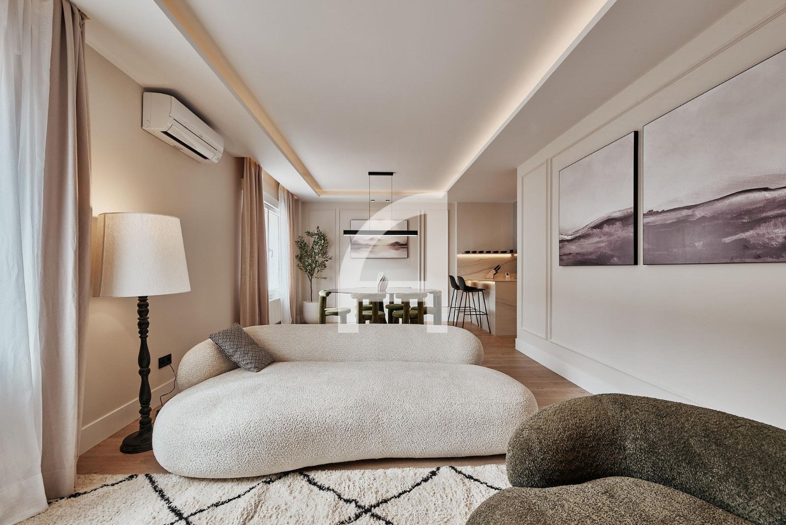 La vivienda presenta una distribución equilibrada que diferencia claramente la zona de día de la zona de descanso.