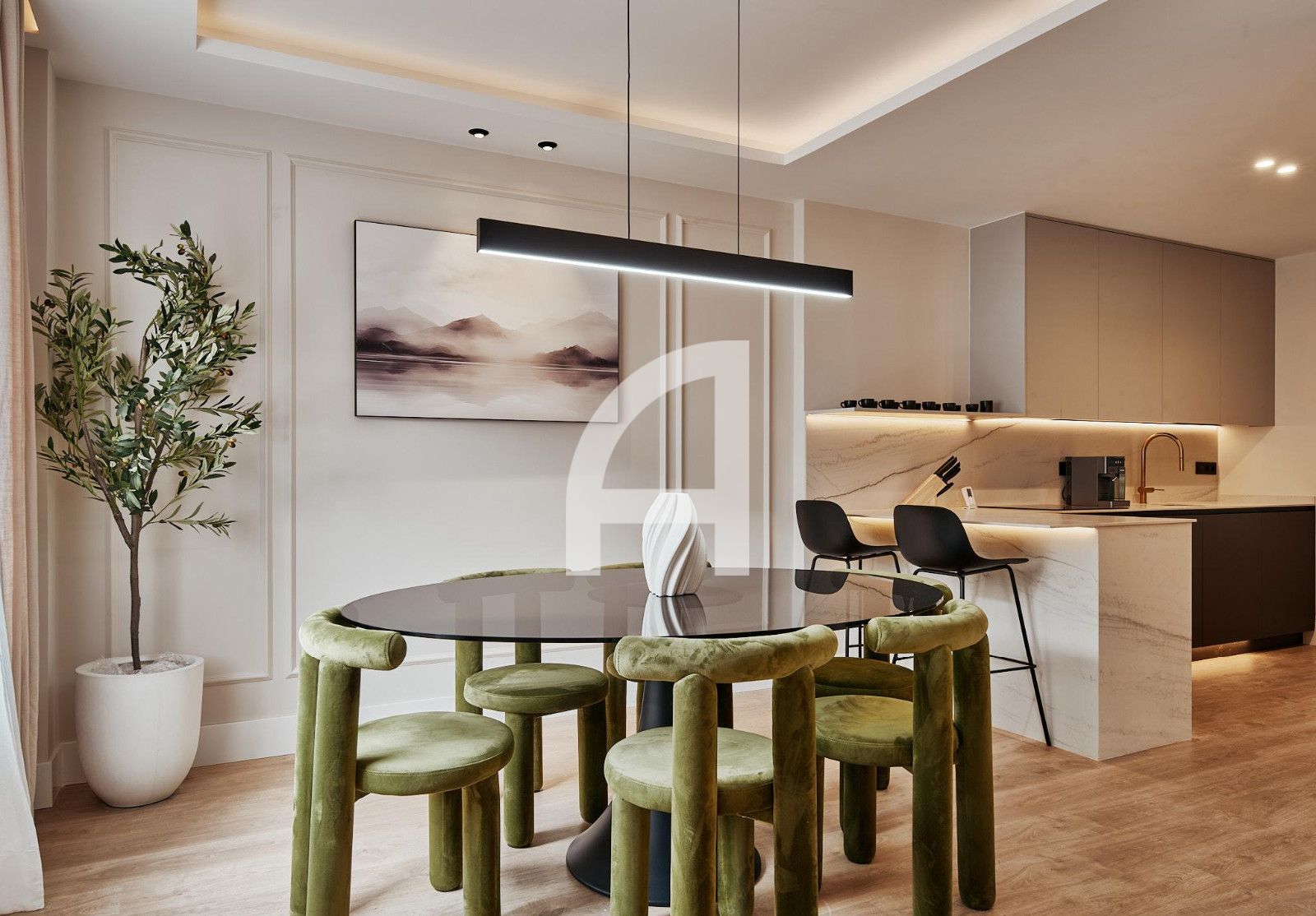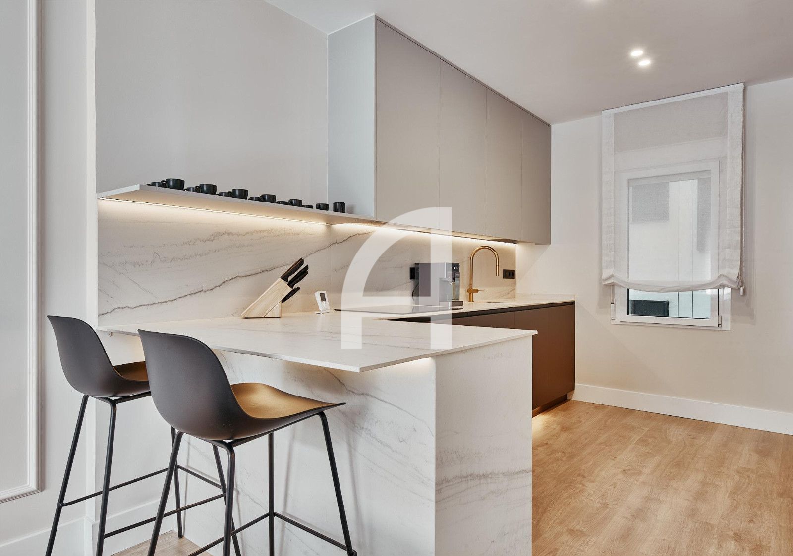 La cocina se entrega completamente equipada y la vivienda amueblada, lista para entrar a vivir.