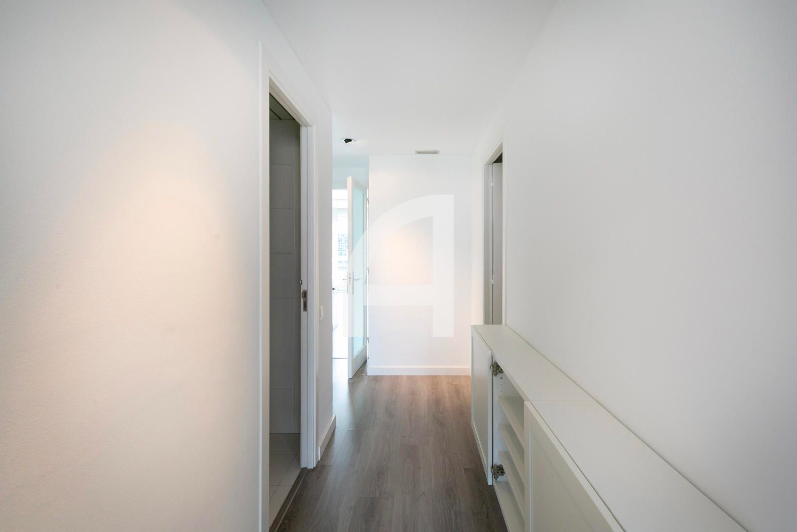 La vivienda se compone de tres habitaciones, todas exteriores y con armarios empotrados. La habitación principal va en suite y está precedida por un vestidor, con un cuarto de baño de gran tamaño que integra bañera y ducha independientes para mayor comodidad. Dos habitaciones dobles comparten otro cuarto de baño completo, lo que facilita la vida diaria y las visitas sin complicaciones. El lavadero anexo a la cocina aporta funcionalidad adicional, manteniendo el área de estar libre de tareas domésticas visibles.