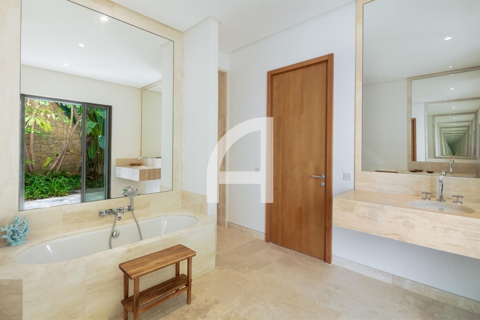 Un pasillo actúa como un balcón interior, conectando elegantemente las habitaciones y ofreciendo vislumbres del área de estar en la planta baja, mientras que las lucernarias iluminan el espacio con luz natural. Cada dormitorio cuenta con acceso a un área de jardín en el nivel superior, y todas las habitaciones disfrutan de la conveniencia de un baño privado.
