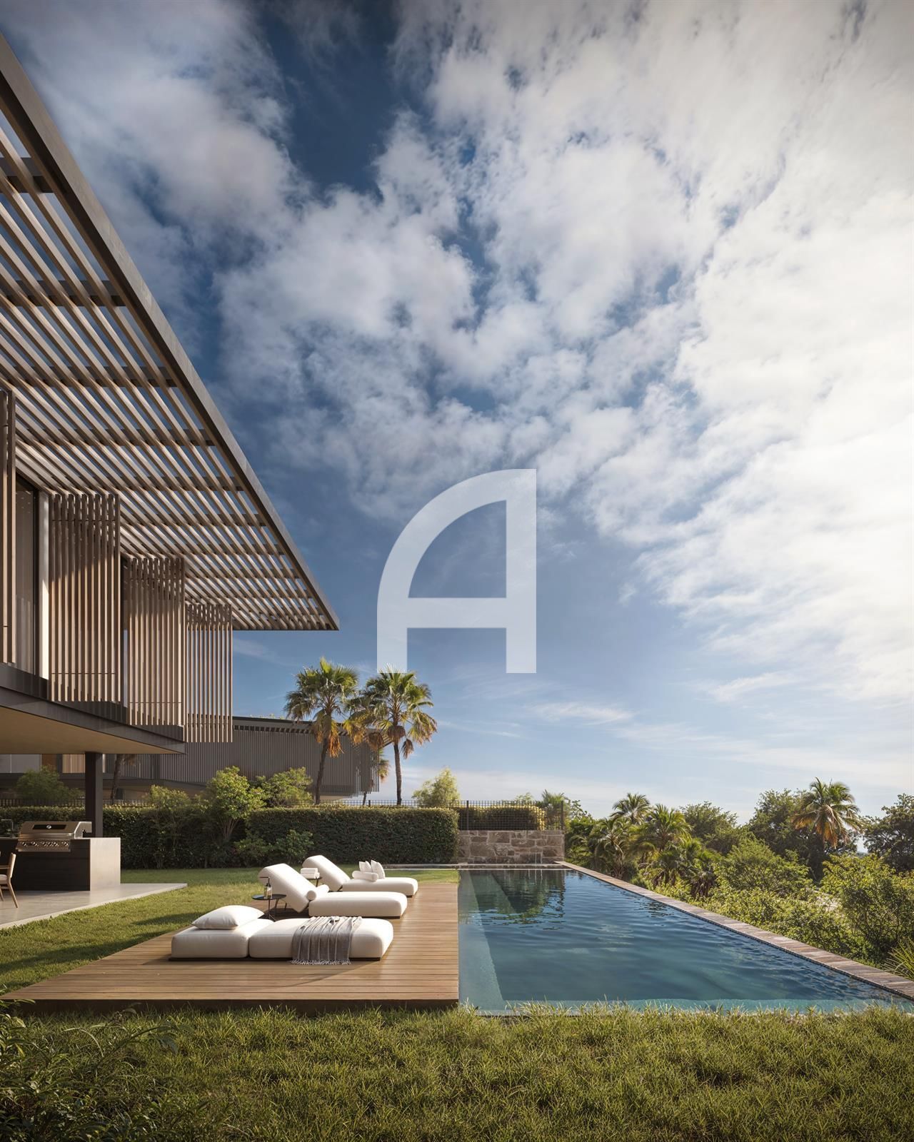 El piso superior está dedicado a la lujosa suite principal, que cuenta con un vestidor y un baño en suite, además de acogedoras habitaciones para invitados diseñadas para ofrecer máximo confort y privacidad. En el nivel inferior, la villa dispone de una variedad de comodidades, que incluyen un amplio garaje, una sala de entretenimiento, una oficina en casa y un spa y gimnasio de última generación, garantizando que todas las necesidades del estilo de vida moderno queden cubiertas.