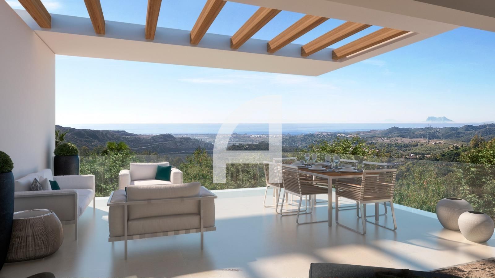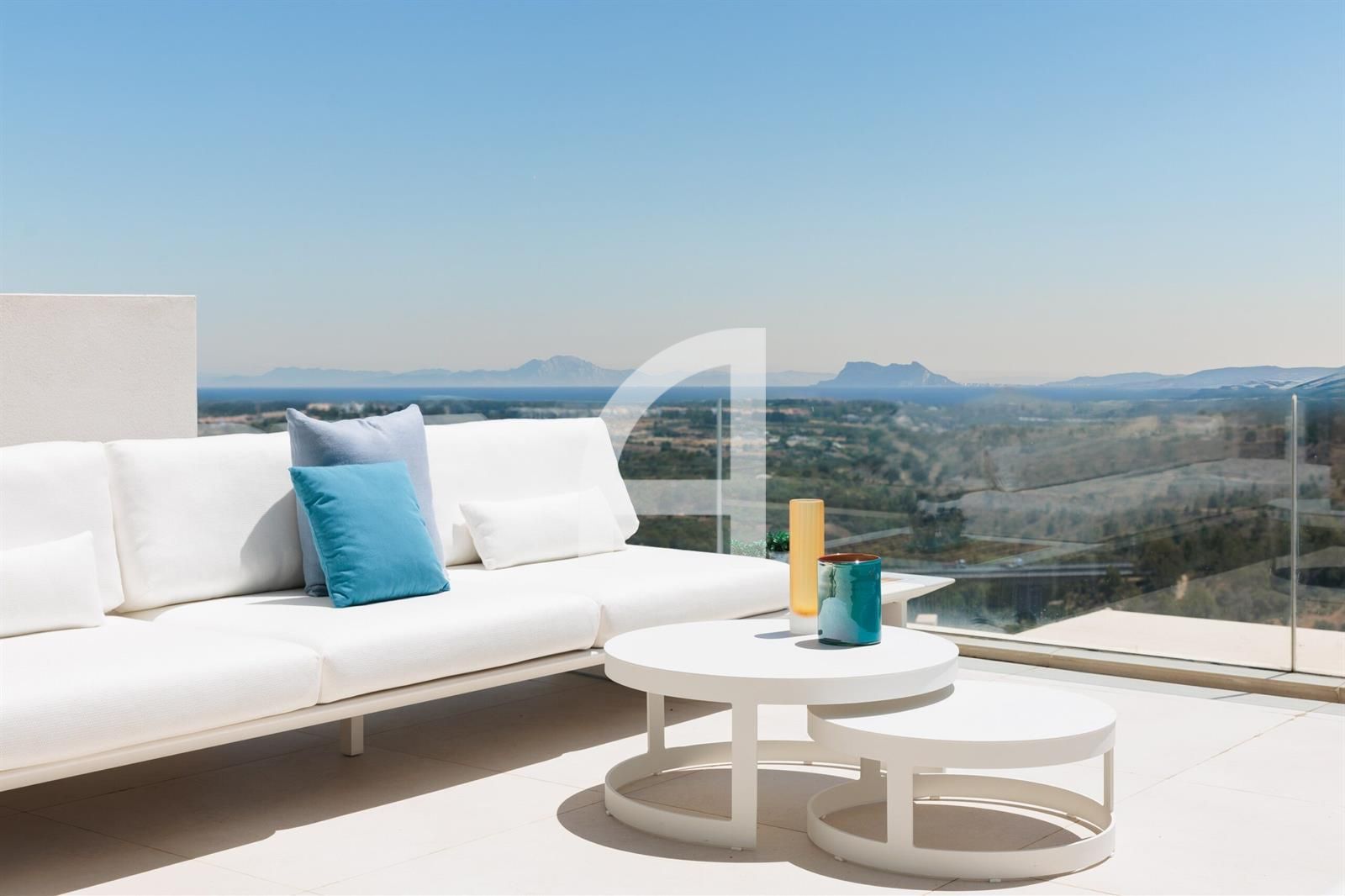 Esto permite a los residentes disfrutar de un entorno virgen y ofrece vistas magníficas a las montañas, el campo de golf, el mar Mediterráneo y el Peñón de Gibraltar. Diseñado por la prestigiosa firma Villarroel-Torrico, este proyecto fusiona un diseño moderno con el encanto andaluz, integrando elementos clásicos que se adaptan armoniosamente a la enclave natural.
