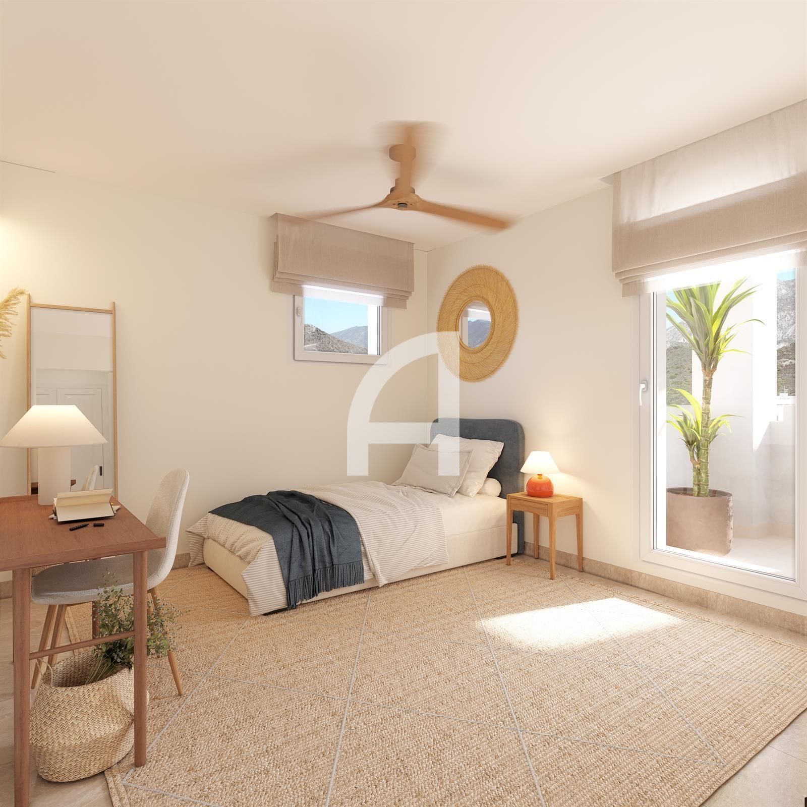 La promoción consta de 10 bloques que albergan 70 amplios y luminosos apartamentos de 2 y 3 dormitorios, incluyendo lujosos áticos dúplex con acceso directo a un solárium. Cada vivienda ofrece grandes terrazas con impresionantes vistas panorámicas al mar Mediterráneo, ideales para disfrutar del cálido clima andaluz.