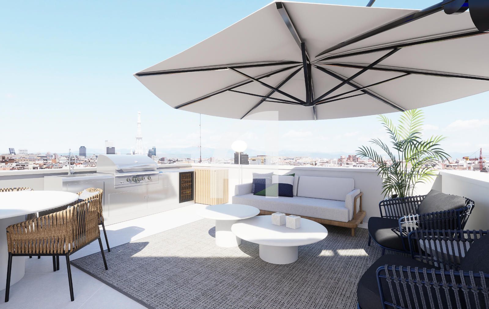 El inmueble cuenta con una terraza de 42,00 m² que aporta luz natural y un lugar al aire libre para momentos de relax o pequeñas reuniones, sin salir de casa. La climatización se distribuye entre calefacción central y aire acondicionado, asegurando confort en todas las estaciones . Los armarios empotrados optimizan el espacio de almacenamiento, manteniendo los ambientes ordenados y prácticos.